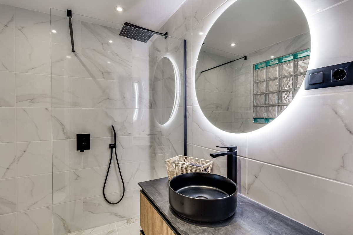 Caractéristiques : Terrasse couverte, Ascenseur, Armoires encastrées, Proche des transports, Terrasse privée, WiFi, Débarras, Salle de bains attenante, Sol en marbre, Double vitrage