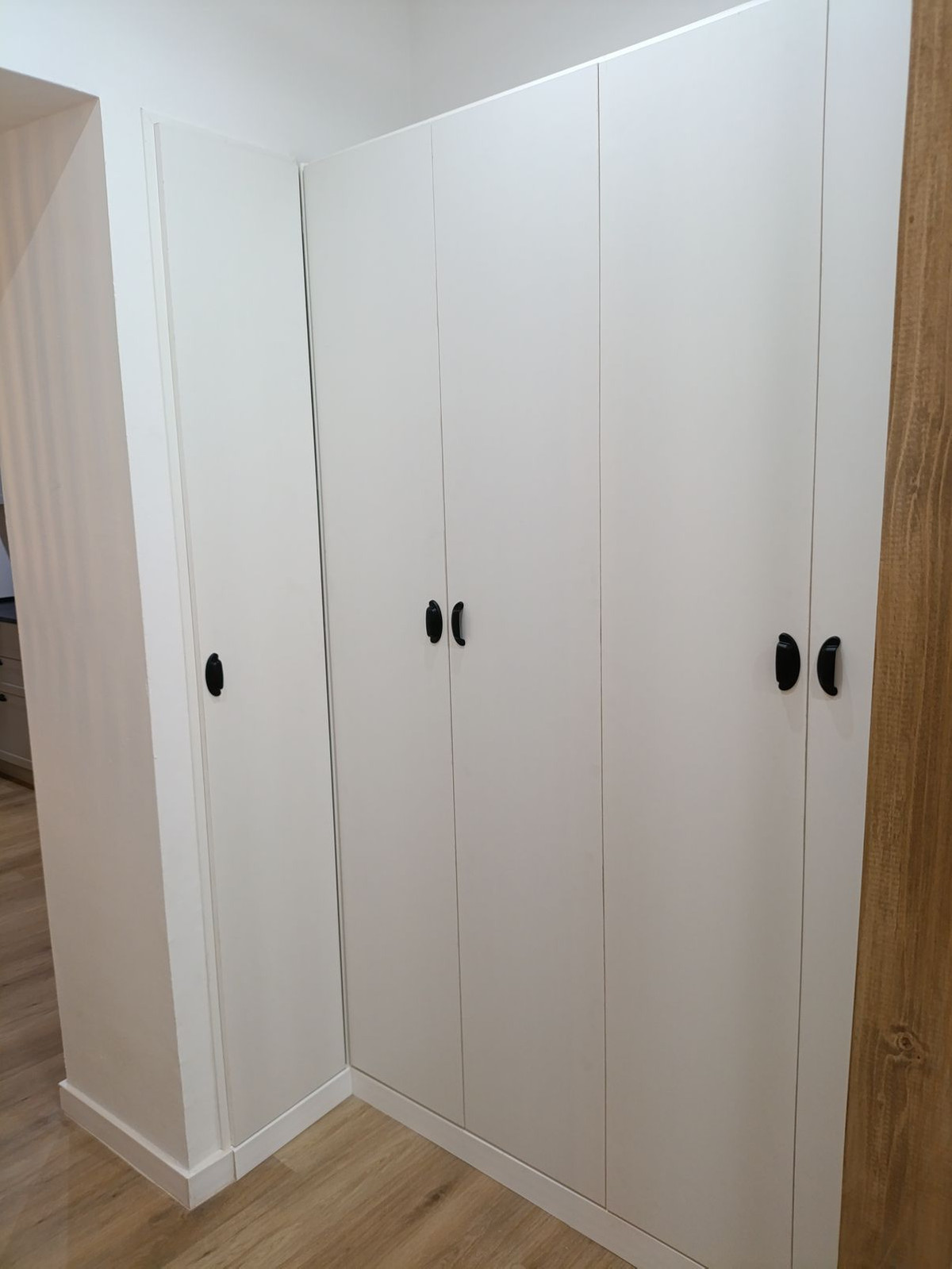 La cuisine, entièrement neuve et conçue sur mesure pour ce bien, comprend une hotte aspirante, une plaque de cuisson vitrocéramique, un four, un lave-linge séchant et un réfrigérateur intégré — le tout neuf et jamais utilisé, et inclus dans le prix. Le mobilier du salon et de la chambre est également neuf et jamais utilisé.