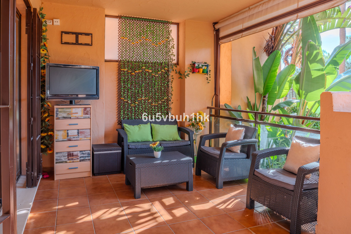 We present this superb end-of-terrace ground-floor apartment located in the renowned Calanova Sea Golf development (Mijas Costa). Built in 2006 and in excellent condition, the property offers 105 m² of constructed area distributed across a spacious living–dining room, a fully equipped independent kitchen, 2 double bedrooms with fitted wardrobes, and 2 full bathrooms (one en suite).
