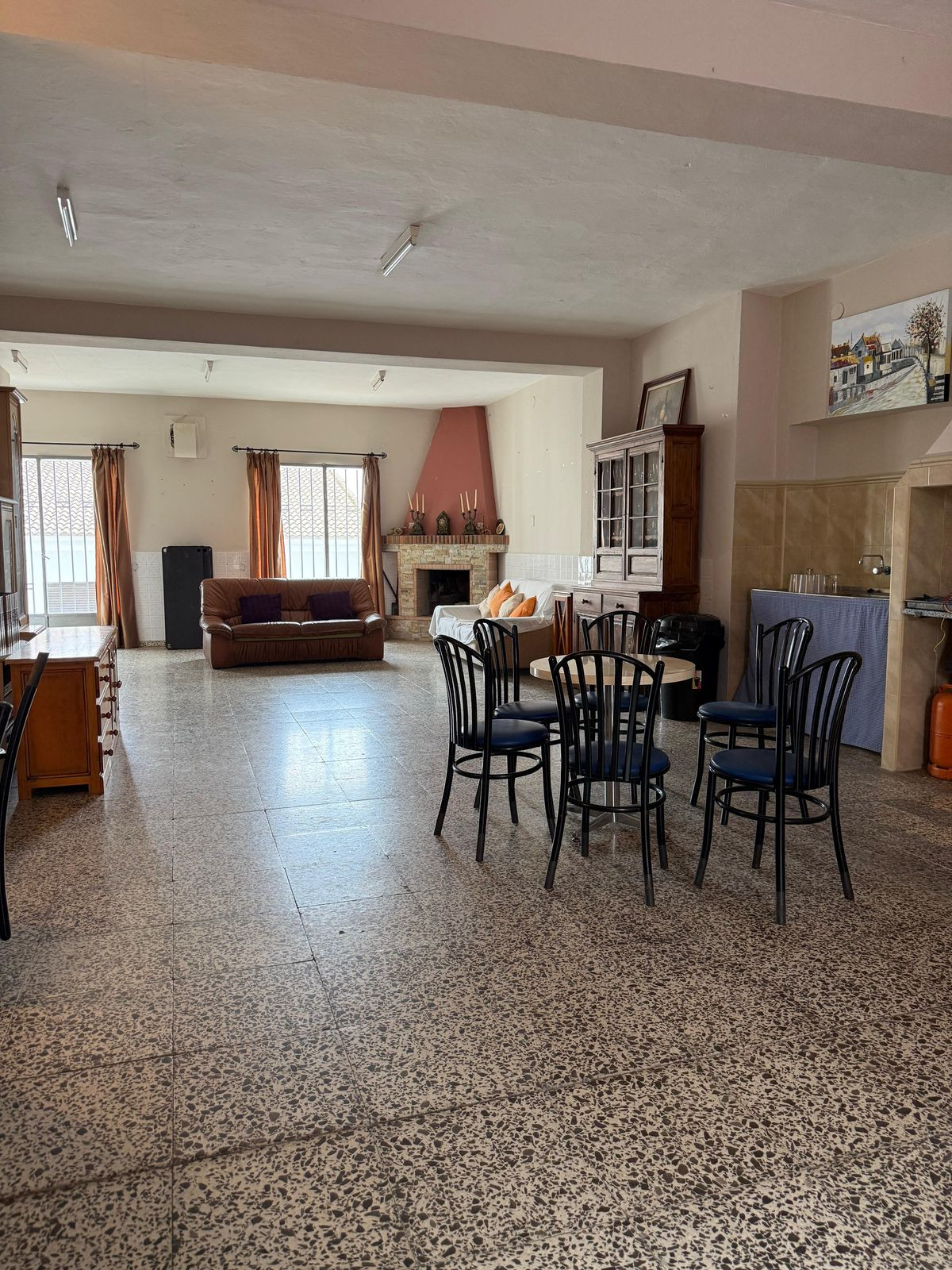 Rez-de-chaussée (niveau rue) : Ancien bar transformé en un vaste espace familial, il pourrait devenir un bar branché, un café, ou encore être converti en appartements ruraux indépendants. Profitez de l’engouement pour les expériences andalouses authentiques !