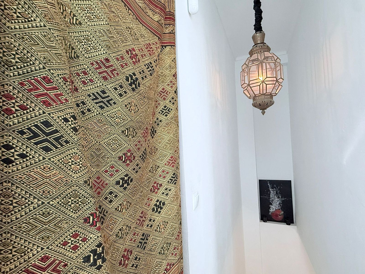 Arranged over three light-filled floors, the home features a spacious open-plan lounge and dining area, flowing seamlessly into a striking fully equipped open-plan kitchen with a range-style oven and central island. A dramatic bespoke light feature runs through the centre of the house, flooding the interiors with natural light and enhancing the airy, elegant, riad-like feel. Beyond the kitchen is an additional lounge area, ideal for entertaining or quiet relaxation. Two separate staircases add both character and flexibility to the layout.