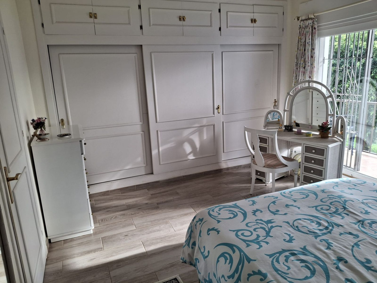 Townhouse located in a small Andalucian pueblo style community in Nueva Atalaya. The property is situated in a quiet cul de sac close to all local amenities, shopping centre, schools and golf. The community boasts a large swimming pool and park sized landscaped gardens. The south facing house is built on 2 levels with an entrance hall,with a comfortable lounge dining area and a modern kitchen on the ground floor.. On the second floor it has 2 bedrooms, 2 bathrooms, one on-suite and two terraces. The lounge and terraces face onto the large communal gardens with a sea view from the main bedroom .It is well presented with a modern kitchen, air conditioning and fireplace in the lounge. Private parking directly in front of the house.