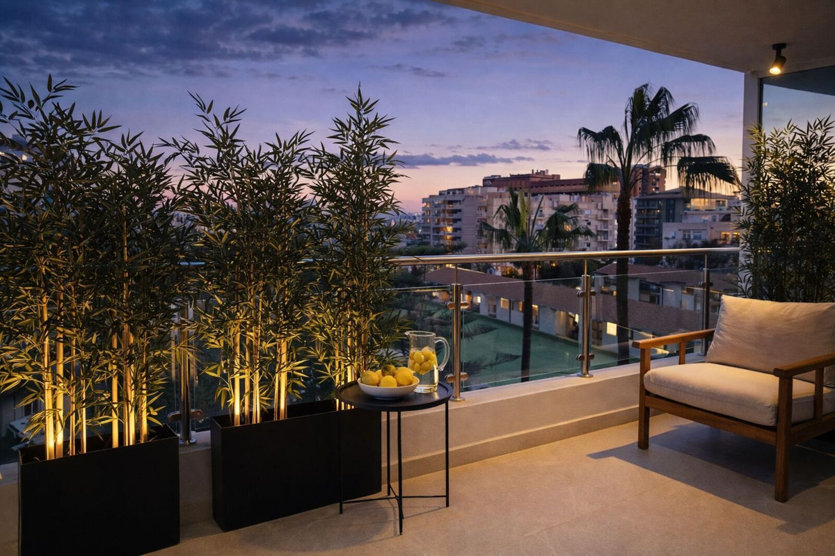 Fuengirola is located 25 km southwest of Málaga airport, between Benalmádena and Mijas Costa. It enjoys a Mediterranean climate with an average annual temperature between 18 °C and 20 °C, and plenty of sunshine all year round. With over 85,000 inhabitants, it is one of the most popular destinations on the Costa del Sol, boasting 8 km of beaches—several with Blue Flag status—a seafront promenade, and all services within easy reach. The property is surrounded by supermarkets, restaurants, public transport, and is just 450 meters from the beach, combining urban convenience with a Mediterranean lifestyle.
