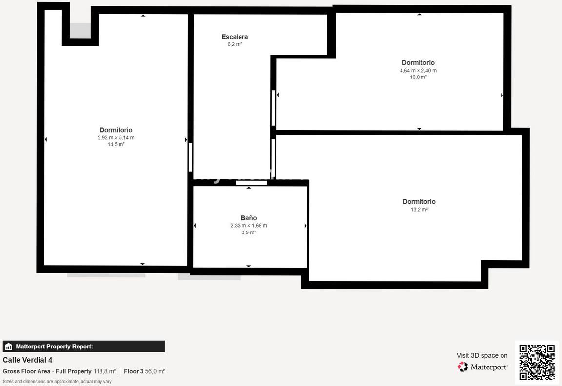 First floor: Three bedrooms (two with built-in wardrobes) and a full bathroom with shower. The master bedroom stands out for its generous size and storage capacity.