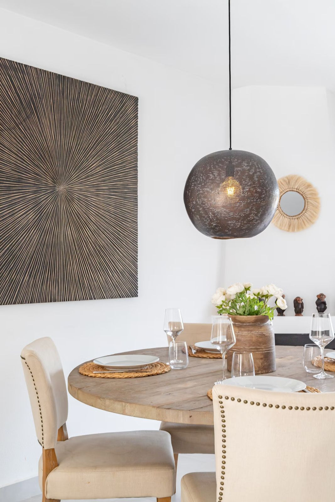 East Marbella, Elviria centre. For sale fantastic renovated and charming townhouse in Pueblo Sueco. This townhouse was refurbished to high quality standards in 2018 and beautifully decorated throughout. The property has a modern feel of top quality and is built over 2 floors. When entering the plot you will find an inviting west patio partially covered. It is furnished with chillout daybeds and there is lots of space for al fresco dining. There are mature types of spectacular cactus and easy maintaining planters. Entering the house you will find a handy guest toilet on the right and the fully equipped kitchen with all the necessary appliances. Also in the kitchen a cosy window to the front patio. The living room has large folding doors to the terrace, good space for two 3 seater-sofas and a nice round dining table next to the fire place. From the living room you access a lovely and spacious covered morning terrace with a 6 seater table, perfect to enjoy your breakfast! The stairs take you to the lower floor where we find a good sized bedroom with another auxiliary bedroom which could be used as dressing room. Another bedroom with a lot of extra space with a desk and dressing area. There are two bathrooms with generous showers, (one ensuite) and a washing/ storage room. These two bedrooms lead you to the patio on the lower floor from which you can access directly to the private pool club. At the patio you will find a beautiful deck where you can relax on the sunbeds and refresh using the solar shower. You can optionally be a member of the club for a yearly fee. There is Daikin hot and cold air conditioning system, underfloor heating in the bathrooms and high speed fibre optic. The neighbours are a combination of local and international nationalities. There is only a 10 minute walk to the best beach in Marbella, a 10 minute drive to Marbella city and less than 45 minutes to Malaga airport. There are as well several 18 hole golf courses like Santa Maria Golf, Santa Clara, Rio Real and Marbella Golf. Marbella has become a brand in Europe and all over the world with 320 days of full sun a year and total of 2900 hours of sun. Elviria represents the very essence of quality of life on the Costa del Sol. It is located in a unique natural setting and has a fantastic range of facilities nearby, including three 4-and-5 star hotels: Don Carlos, Marriott and Estrella de Mar, renowned golf courses such as Santa María and Green Hills, a Michelin-starred restaurant, Nikki Beach Club and one of the best beaches on the coast, all flanked by outstanding bars and restaurants, supermarkets and a local street market every Friday and an organic market every other Saturday. In addition, there is a Town Hall, doctor's office, post office, a wide range of schools, including private schools...all within walking distance. This is a unique opportunity and the ideal location for both a permanent residence or dream holiday home.