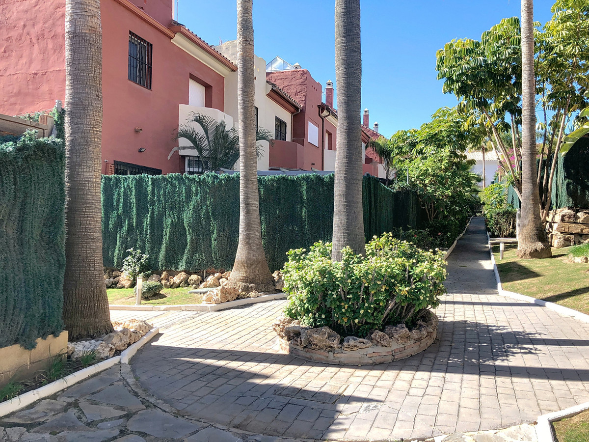 Additional features include individual air conditioning in the living room, elegant marble flooring, and double-glazed windows. The property is situated within a well-maintained, family-friendly urbanization with lush gardens and a communal swimming pool. Well-preserved and move-in ready, this townhouse is an excellent investment in one of Estepona’s most desirable areas.