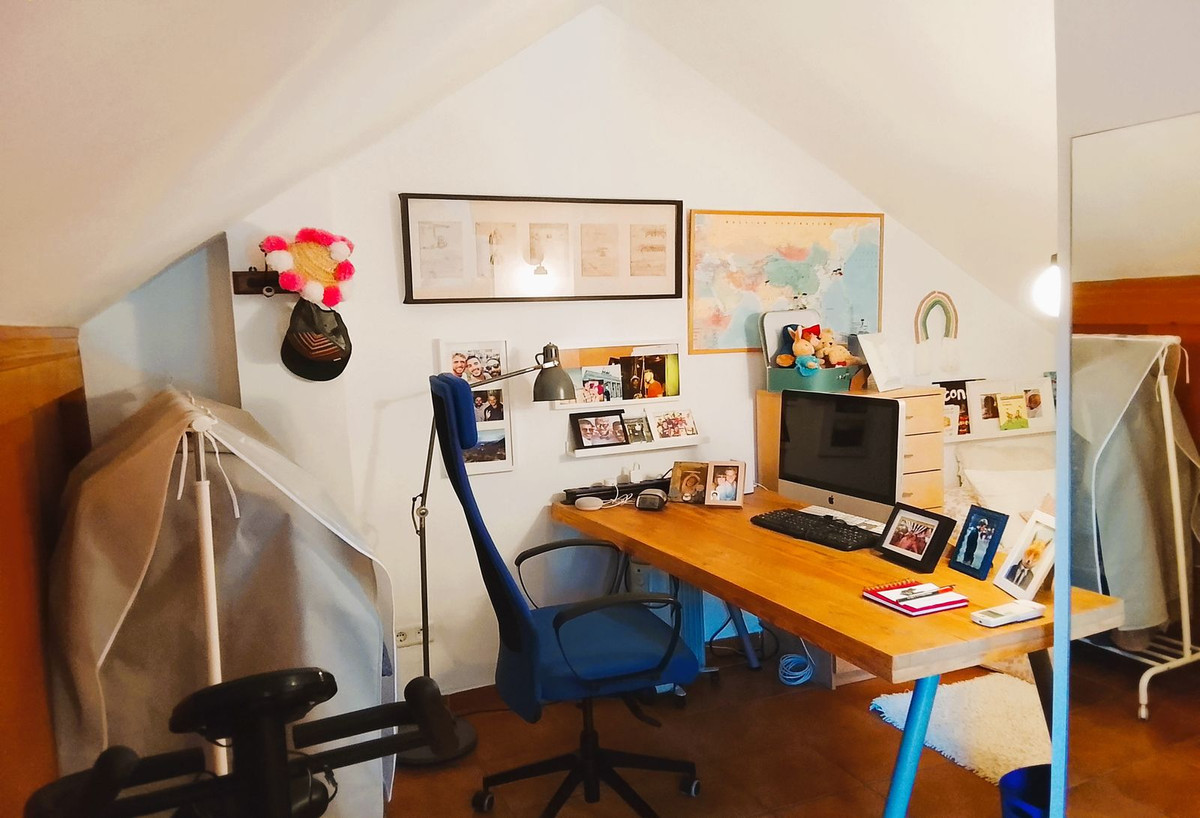 In the attic, another spacious bedroom with a study area and a small roof terrace has been created. The entire house is air-conditioned and secured by a modern alarm system.