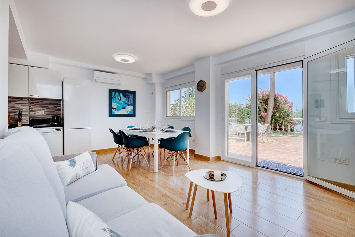 A large and spacious duplex apartment situated on the beachfront to the west of Estepona, offering direct access to the beach. Comprising of 5 bedrooms and 4 bathrooms over 2 floors. On the upper floor, there are 2 bedrooms and 2 bathrooms, (Master bedroom with ensuite bathroom, kitchen with laundry room, living room / dining room area with panoramis sea views and a terrace to enjoy them. On the lower floor, there are a further 3 bedroom and 2 bathrooms, open plan kitchen with living room and dining area. There is a large terrace on this level and direct access to the promenade and beach. This level has independent access and can be closed off from the upper floor, meaning that it can be rented independently from the upper level. The property is in possession of a short term rental license (tourist license) and has been very successfully rented previously. A sound investment property with spectacular sea views.