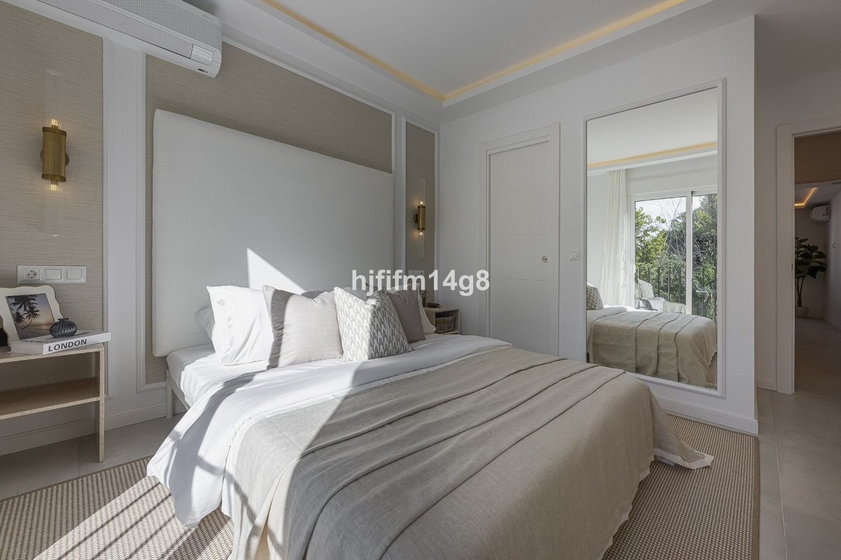 We are delighted to present this stunning, fully refurbished 4-bedroom townhouse located in the sought-after San Javier urbanisation in Nueva Andalucía, within the prestigious Marbella area. Set in a charming and very intimate residential community of just 28 properties, featuring beautifully landscaped gardens and a communal swimming pool, this home offers an ideal combination of comfort, style, privacy and prime location. Situated just behind Aloha Golf Course in a quiet cul-de-sac (not roadside), the property ensures calm and tranquillity while remaining within walking distance of restaurants, shops and the renowned Aloha College. Puerto Banús and the beaches are only a 5-minute drive away, with excellent connectivity to all local amenities.