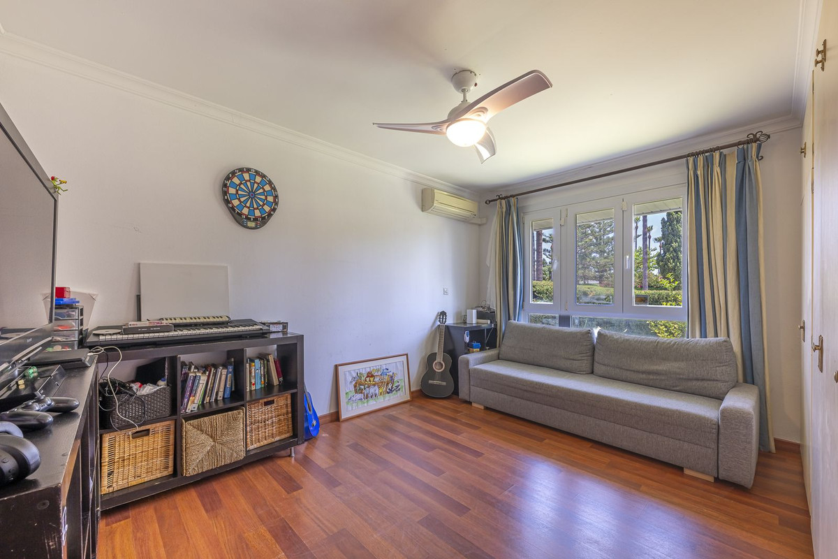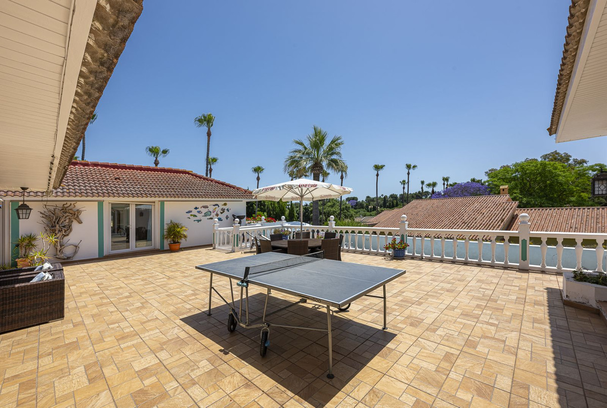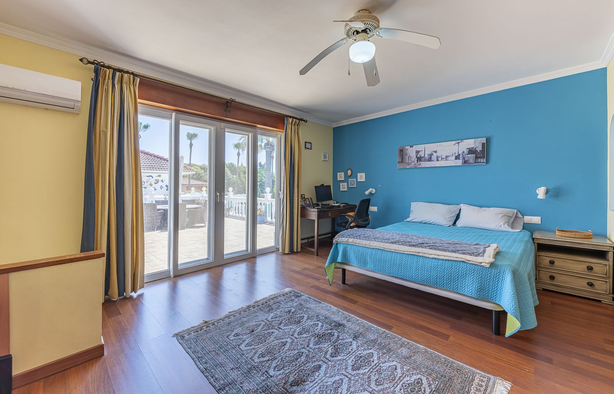Set on a sunny corner plot in prestigious Sotogrande Costa, this impressive detached villa offers seven bright, airy bedrooms and six bathrooms — providing generous space for family living or holiday entertaining.