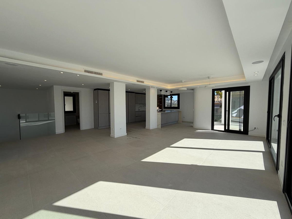 Inondée de lumière naturelle, la villa offre des espaces de vie décloisonnés, baignés de lumière grâce à de grandes baies vitrées, créant une harmonie parfaite entre intérieur et extérieur et offrant une vue imprenable sur la mer. La cuisine ouverte et moderne est dotée d'un grand îlot central avec plan de travail intégré, idéal pour le quotidien comme pour recevoir.