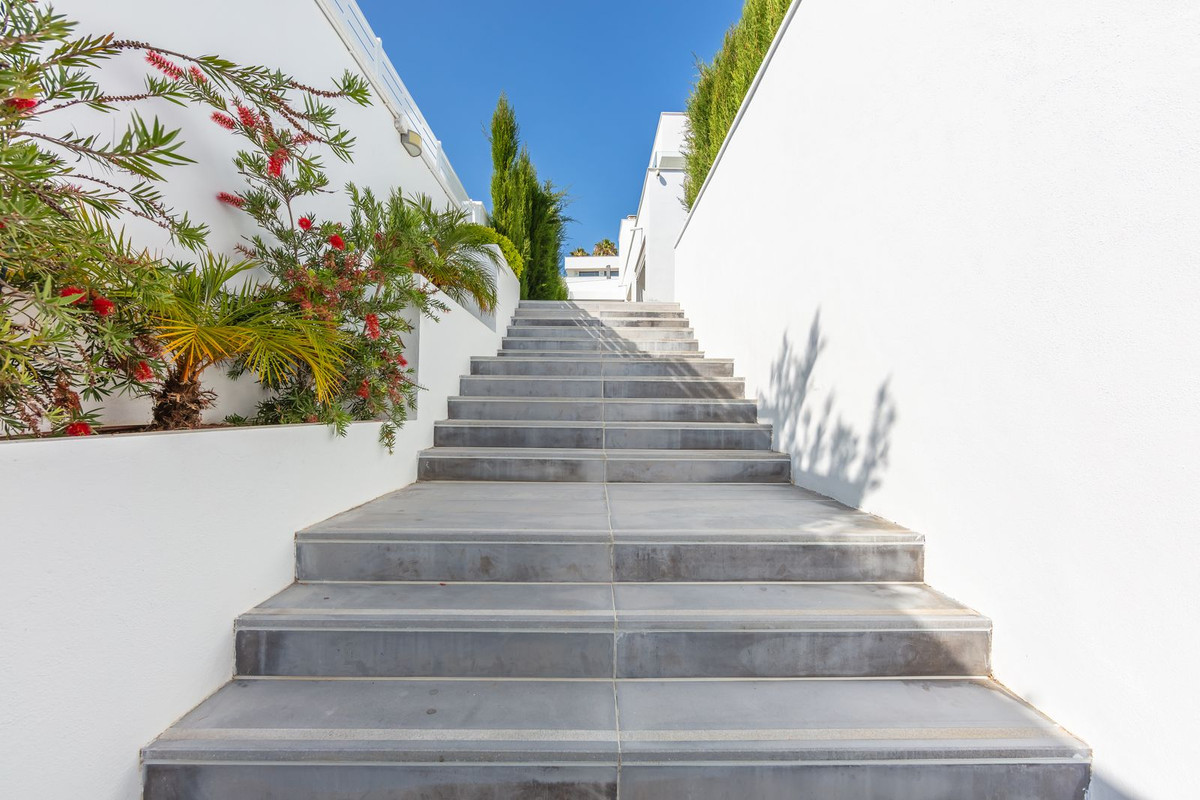 Magnifique villa contemporaine, de construction récente avec des matériaux haut de gamme, offrant une vue imprenable sur la mer et la verdure environnante. Présentée en parfait état et idéalement située dans un quartier résidentiel calme, elle se trouve à seulement 200 mètres des supermarchés, restaurants, salle de sport, coiffeur et autres commodités, à 800 mètres du charmant Puerto de la Duquesa et à 500 mètres des superbes plages de Manilva. La ville animée de Sabinillas, avec ses commerces et services de toutes sortes, est à seulement 1,5 km. Grâce à son orientation sud-est, la propriété bénéficie d'un ensoleillement optimal tout au long de la journée et d'une vue imprenable sur le lever du soleil chaque matin. La villa est répartie sur deux niveaux et comprend un garage spacieux de 46 m² pour deux véhicules, situé à l'entrée, ainsi qu'un grand débarras de 15 m². Elle dispose d'un vaste séjour-salle à manger donnant sur une grande véranda, facilement fermable par des rideaux de verre. Toutes les chambres sont spacieuses et baignées de lumière naturelle, tout en préservant l'intimité de leurs occupants. Cette villa offre des prestations exceptionnelles, notamment un chauffage au sol dans toute la propriété, un système de filtration d'eau performant avec surpresseur, des volets et stores électriques, des moustiquaires à toutes les fenêtres et un système domotique. Le jardin, très privé et facile d'entretien grâce à son gazon synthétique haut de gamme, comprend une piscine, un éclairage extérieur et un agréable espace détente, idéal pour se relaxer et profiter du plein air. Cette villa représente une opportunité exceptionnelle, difficile à égaler, et mérite amplement une visite.