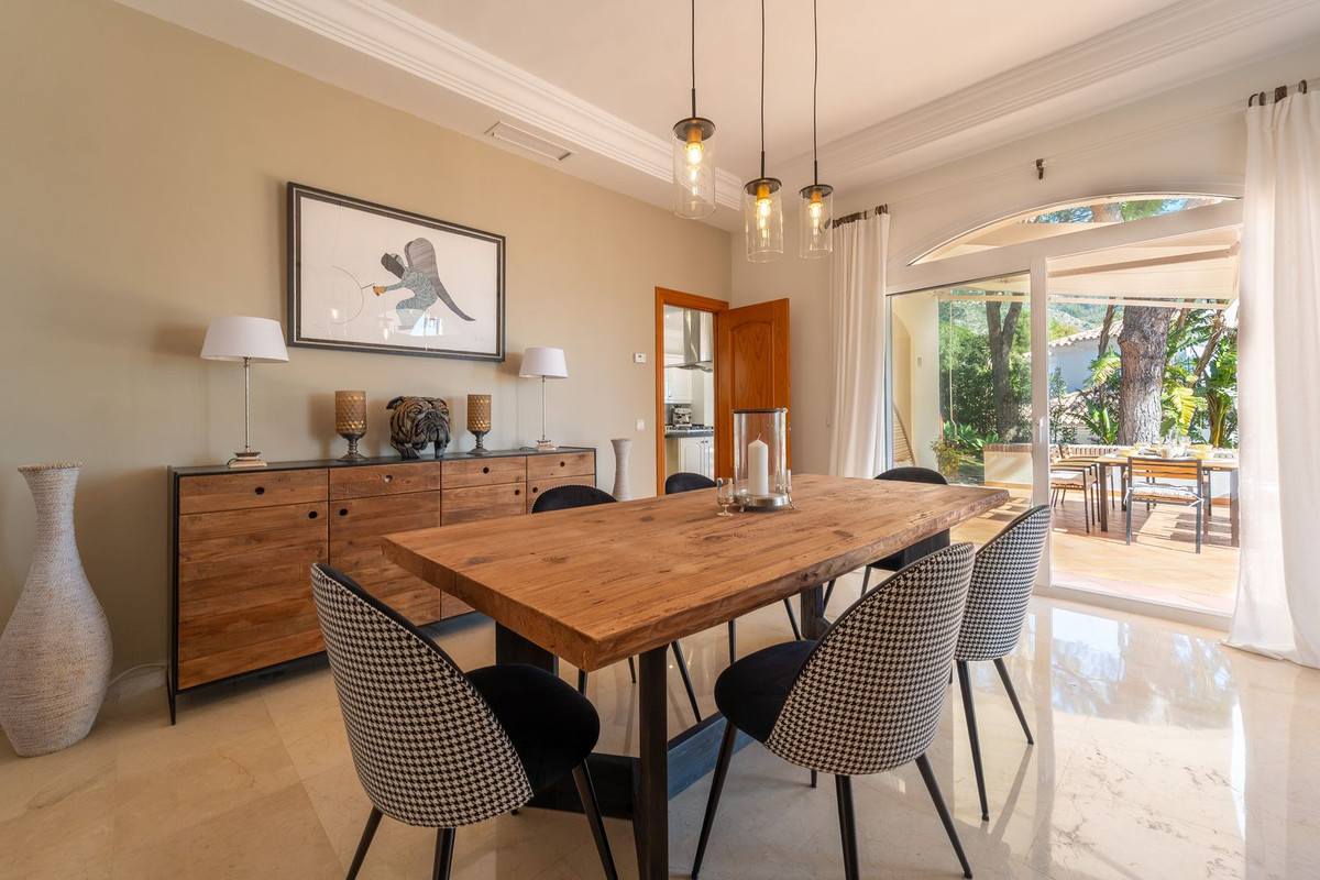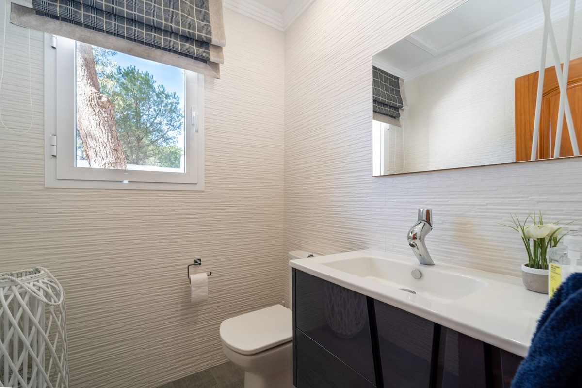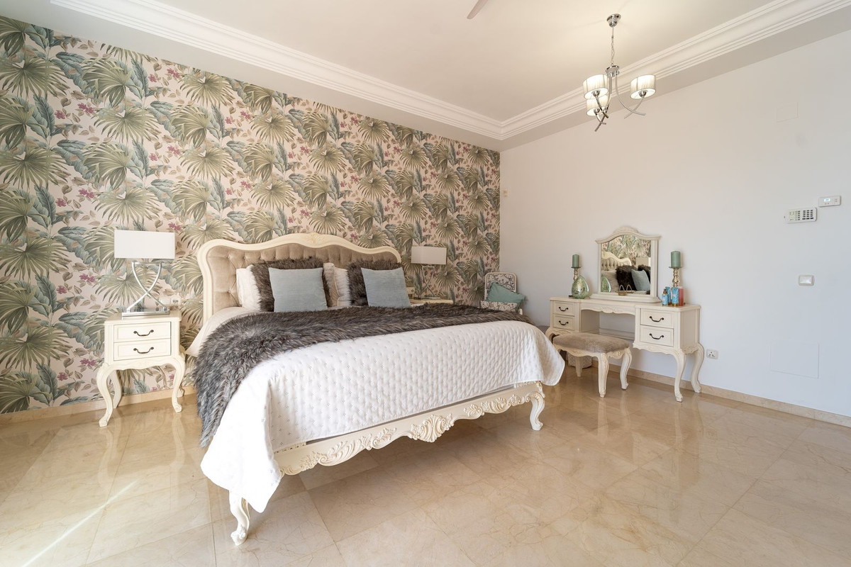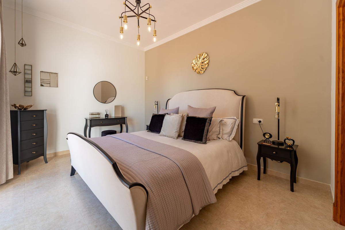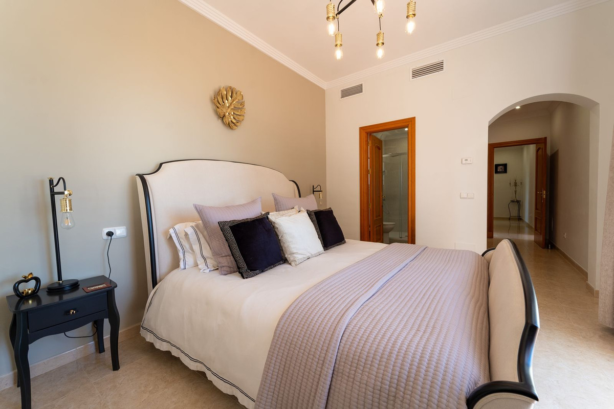 Nestled behind electric gates the villa completely embodies beautiful Andalusian architecture with its sweeping brickwork and classic appearance. With a driveway and an independent double garage, parking several cars is both comfortable, convenient and secure.