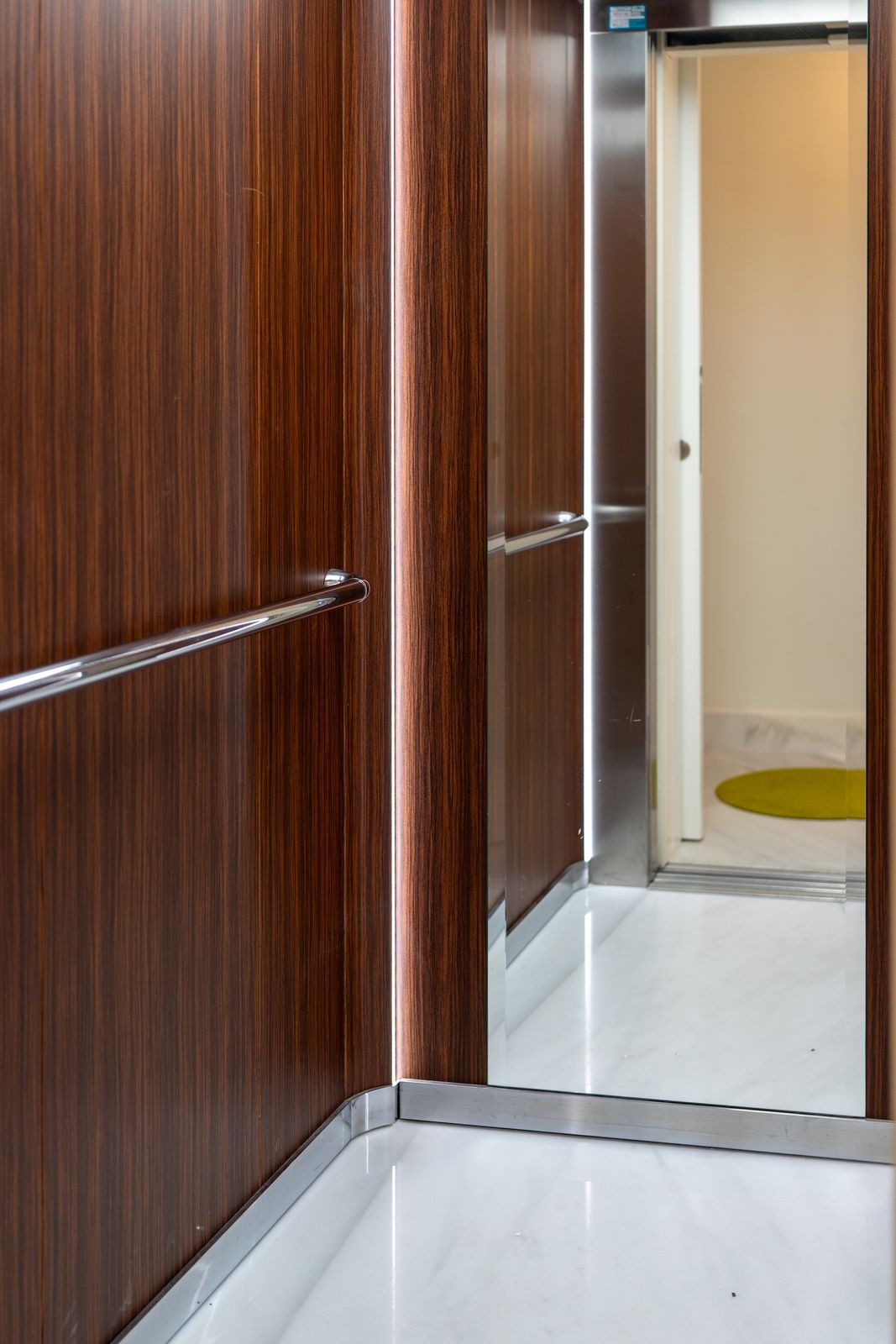 Ce bien occupe le dernier étage d'un immeuble rénové et bénéficie d'un accès direct par ascenseur privé. Pour les visiteurs, l'ascenseur dessert le troisième étage, puis un escalier supplémentaire mène à l'entrée du penthouse.