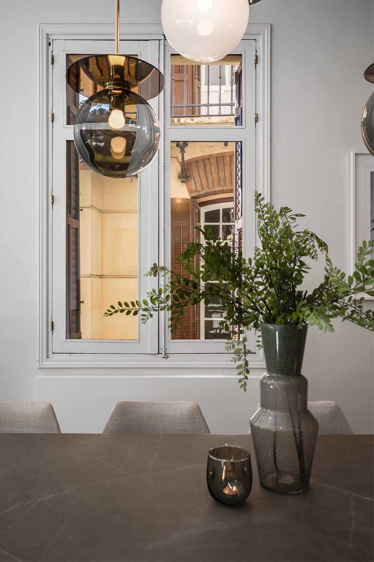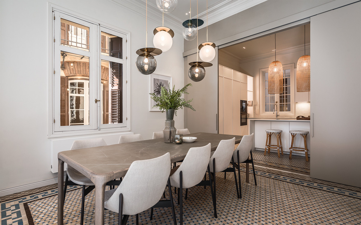 Cette impressionnante demeure allie avec brio l'élégance classique de son architecture d'origine à un design intérieur contemporain, serein et lumineux. Hauts plafonds, moulures d'origine et grandes fenêtres s'harmonisent avec un mobilier aux lignes épurées, des matériaux nobles et une sélection soignée de luminaires, créant une atmosphère à la fois sophistiquée et naturelle.