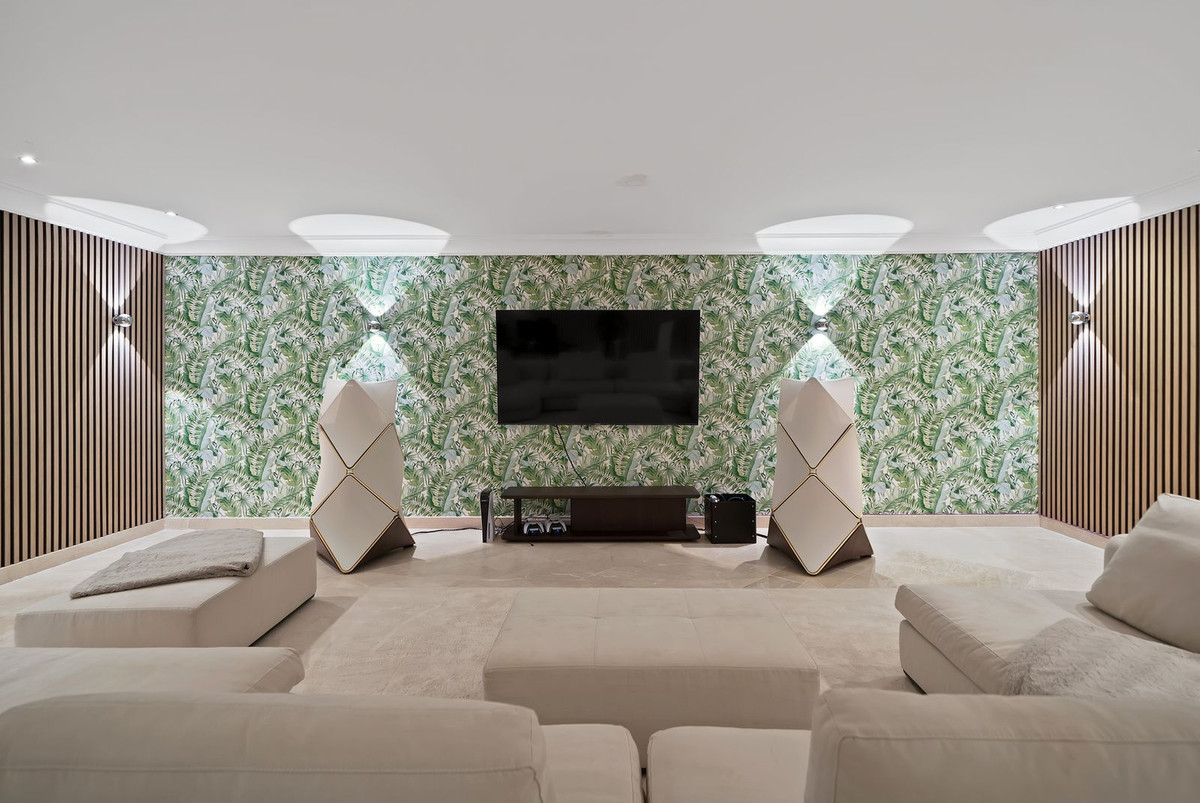 Au niveau inférieur, la propriété continue d'impressionner avec une salle de sport privée de style loft, vaste et entièrement équipée, une salle de cinéma dédiée avec espace bureau et un garage double, offrant à la fois style de vie et praticité.