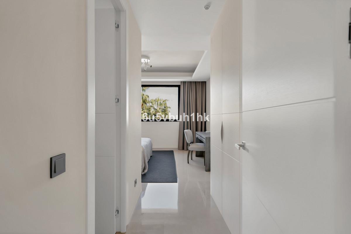 Altos de Puente Romano est un quartier résidentiel bien entretenu, privé et calme, bénéficiant d'une sécurité maximale 24h/24. Situé à quelques minutes à pied de la plage du Golden Mile et des meilleurs restaurants de Puente Romano, il est également très proche du centre de Marbella et de Puerto Banús. Cette villa est dotée des technologies les plus innovantes. Vous pouvez contrôler l'éclairage, la musique, la climatisation et la sécurité via Wi-Fi. Elle comprend 7 chambres avec salles de bains privatives, une salle de sport, une salle de musique et une salle de télévision au sous-sol, ainsi qu'un vaste séjour lumineux grâce à ses grandes fenêtres équipées de rideaux électriques. La villa bénéficie d'une abondante lumière naturelle. La cuisine haut de gamme est équipée de plans de travail en terrazzo sur mesure, d'appareils électroménagers de dernière génération et de robinetterie de la célèbre marque suédoise Tapwell. Cette villa dispose de deux piscines chauffées, d'un système de chauffage également au sous-sol et d'une borne de recharge Tesla. Le jardin abrite une magnifique piscine et la terrasse sur le toit offre un agréable jacuzzi pour 10 personnes, équipé d'une cuisine d'été, d'un barbecue, d'un réfrigérateur et d'un congélateur. Un système audio Sonos est également disponible sur la terrasse, dans la chambre principale et sur la terrasse du rez-de-chaussée. La vue panoramique depuis la terrasse sur le toit est spectaculaire et le coucher de soleil à couper le souffle. Vivre en toute simplicité et en toute sécurité.