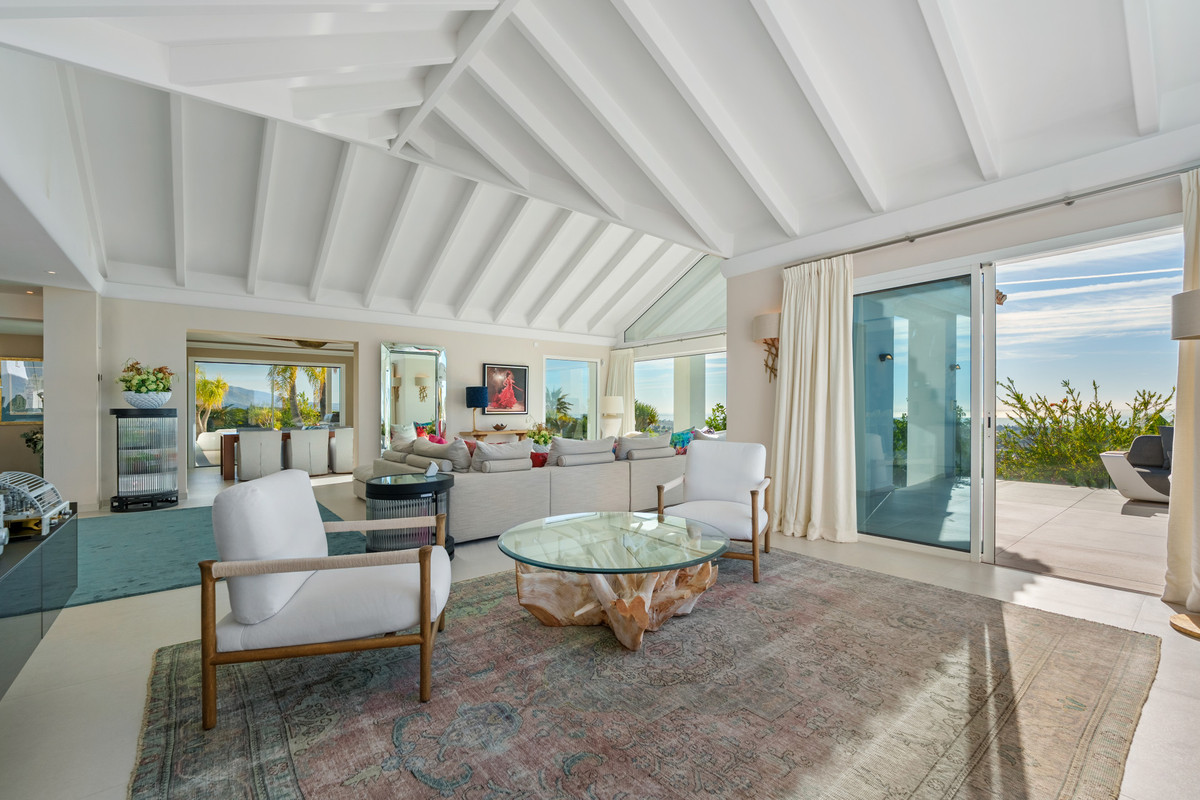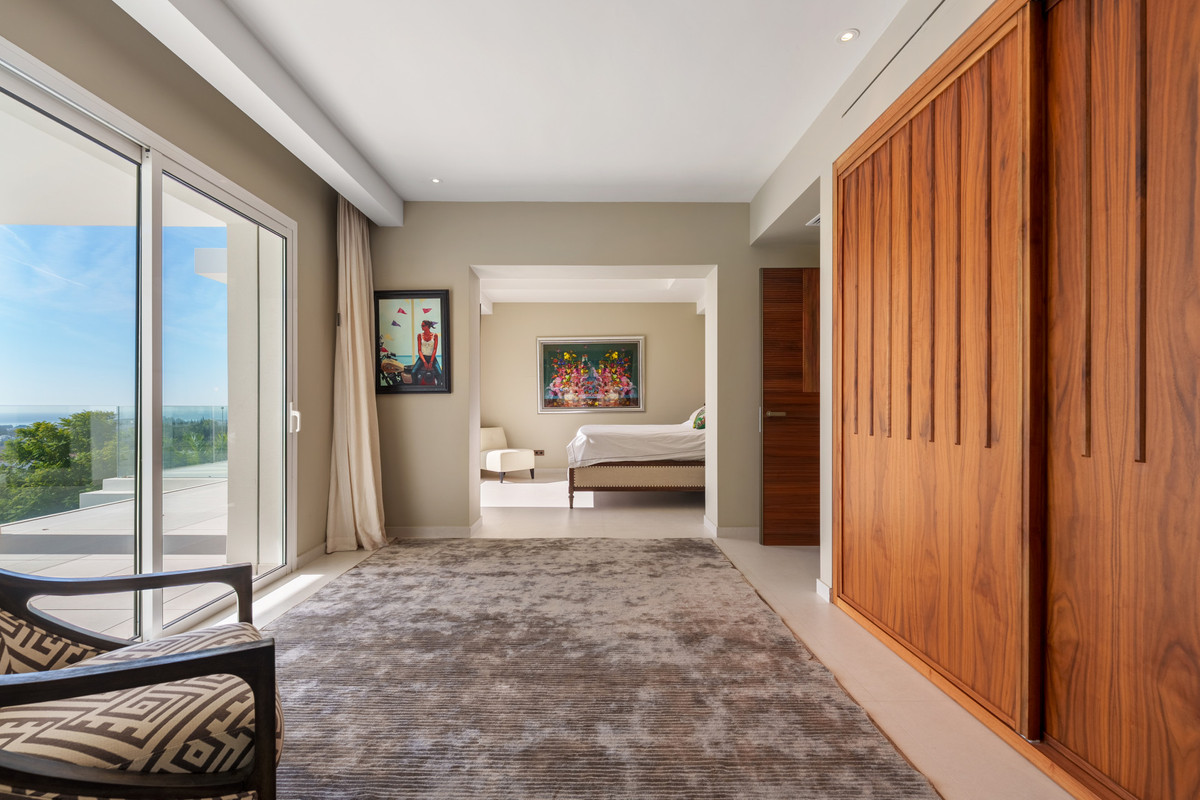 Une villa orientée au sud à Puerto del Almendro, Benahavís, avec neuf chambres et neuf salles de bains attenantes, réparties entre une résidence principale et une maison d'hôtes indépendante sur un terrain de 7 881 m², offrant environ 1 177 m² de surface construite, 140 m² de terrasses, deux piscines extérieures et une vue imprenable sur la mer et les montagnes le long de la côte méditerranéenne.