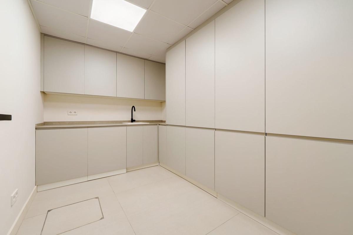 À l'intérieur, le design est lumineux et moderne, mis en valeur par des tons neutres et doux, un éclairage encastré élégant et des baies vitrées qui inondent la maison de lumière naturelle. L'espace de vie ouvert, comprenant salon et salle à manger, est agrémenté d'un impressionnant mur multimédia sur mesure et d'équipements contemporains, et se prolonge harmonieusement vers la cuisine ultramoderne. Ici, un îlot central en bois chaleureux contraste avec les élégants placards et les appareils électroménagers intégrés, tandis qu'un espace repas spacieux invite à partager des repas conviviaux en famille ou entre amis.