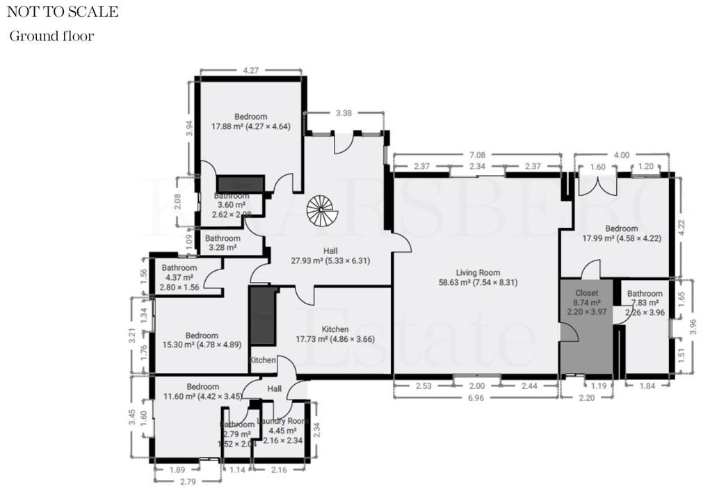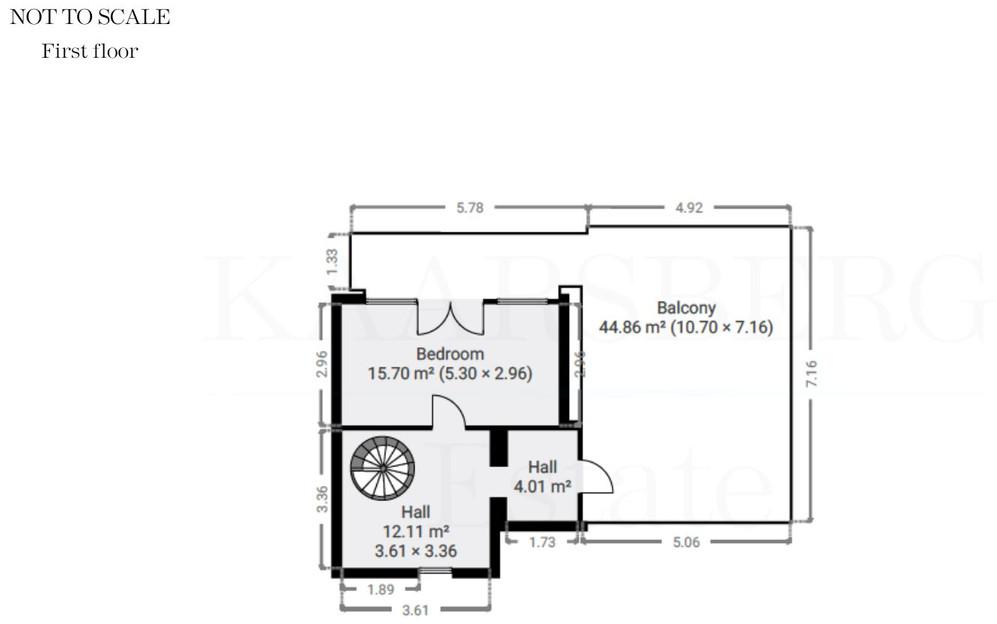 La villa comprend quatre chambres spacieuses, toutes situées au rez-de-chaussée, chacune dotée de placards intégrés et d'une salle de bains privative, ainsi qu'une buanderie séparée. L'entrée donne sur un impressionnant hall à double hauteur, d'où un escalier mène au premier étage. À l'étage, vous trouverez un bureau confortable avec cheminée et accès à une grande terrasse offrant une vue imprenable sur la mer.