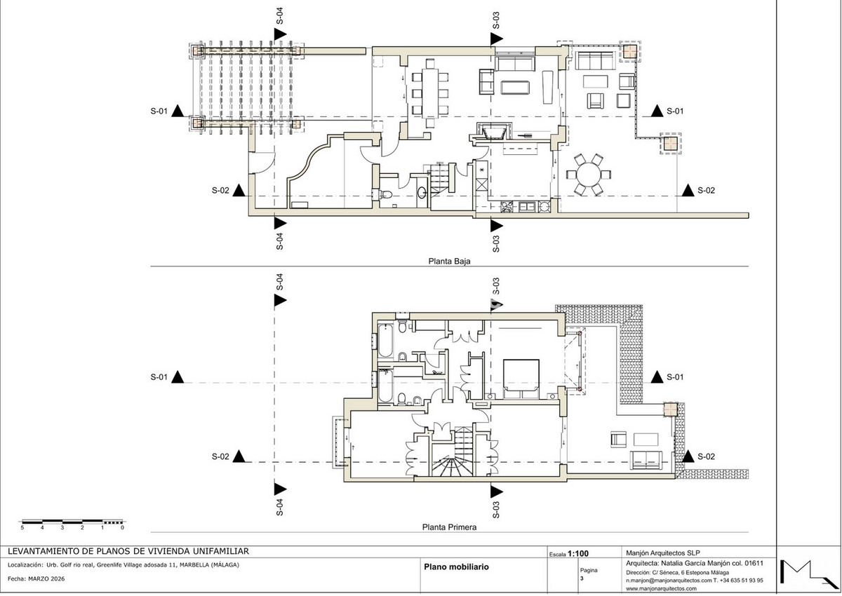 Tous les sols sont revêtus de marbre beige clair (marbre Crema Marfil), y compris les terrasses extérieures du rez-de-chaussée.