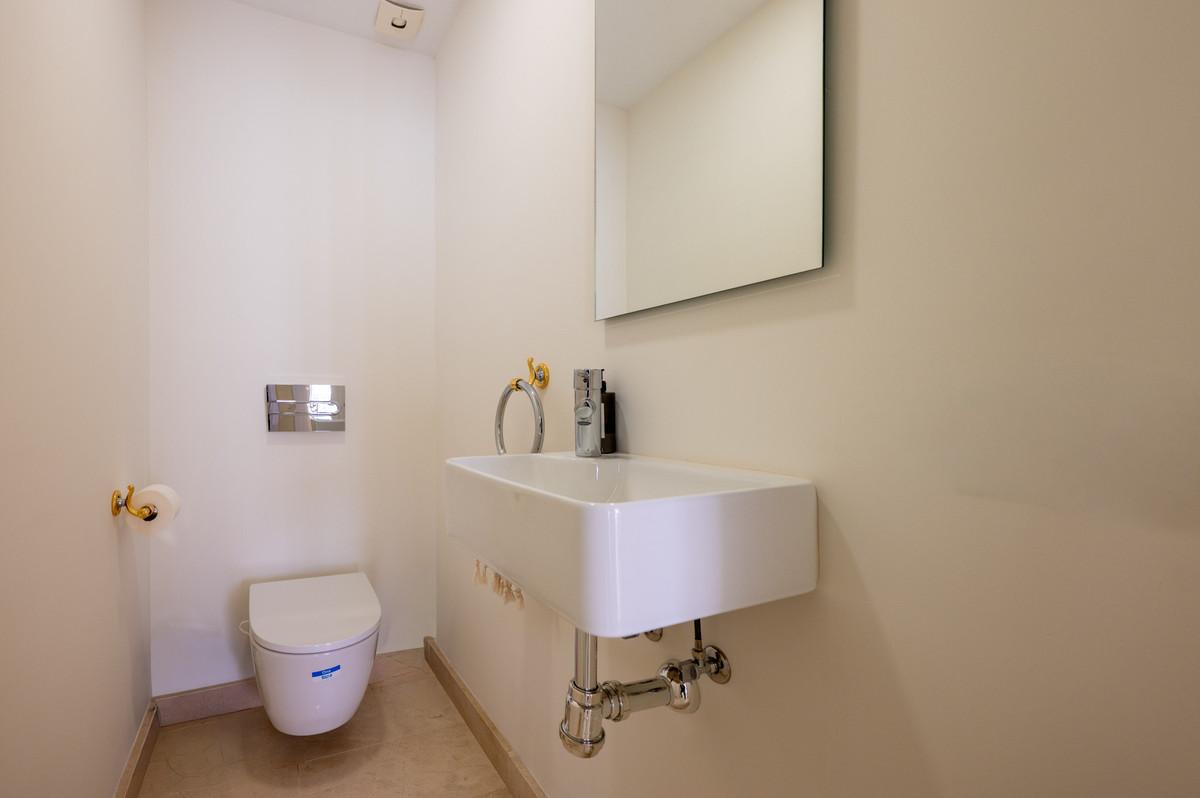 À l'étage, la suite parentale dispose d'une spacieuse salle de bains privative et s'ouvre sur une terrasse découverte entièrement privée. Sa position surélevée amplifie considérablement la vue panoramique déjà magnifique. De là, un escalier mène au joyau de la maison : un solarium de 30 m² sur le toit, offrant une vue imprenable sur la vallée du golf de Nueva Andalucía et les montagnes environnantes, un espace idéal pour admirer le coucher du soleil et profiter des longues soirées méditerranéennes.