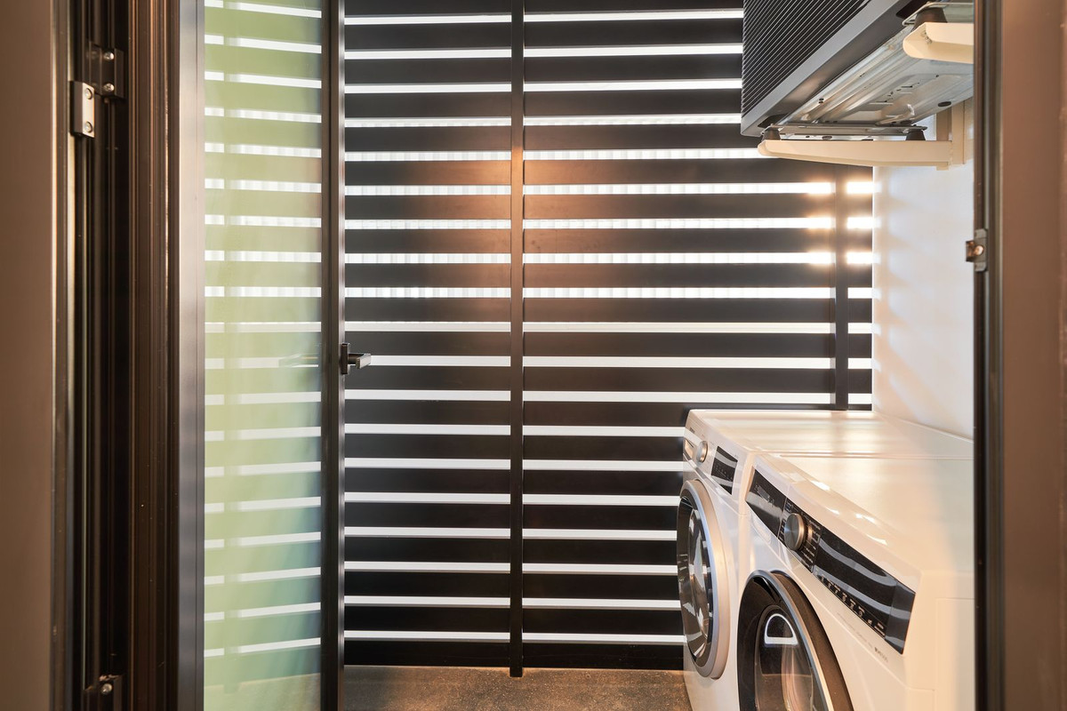 La maison est également équipée de systèmes intelligents et éco-efficients, notamment la domotique, l'énergie aérothermique, la réutilisation des eaux de pluie, des équipements à faible consommation, une protection solaire et un aménagement paysager composé de plantes indigènes qui réduit la consommation d'eau.