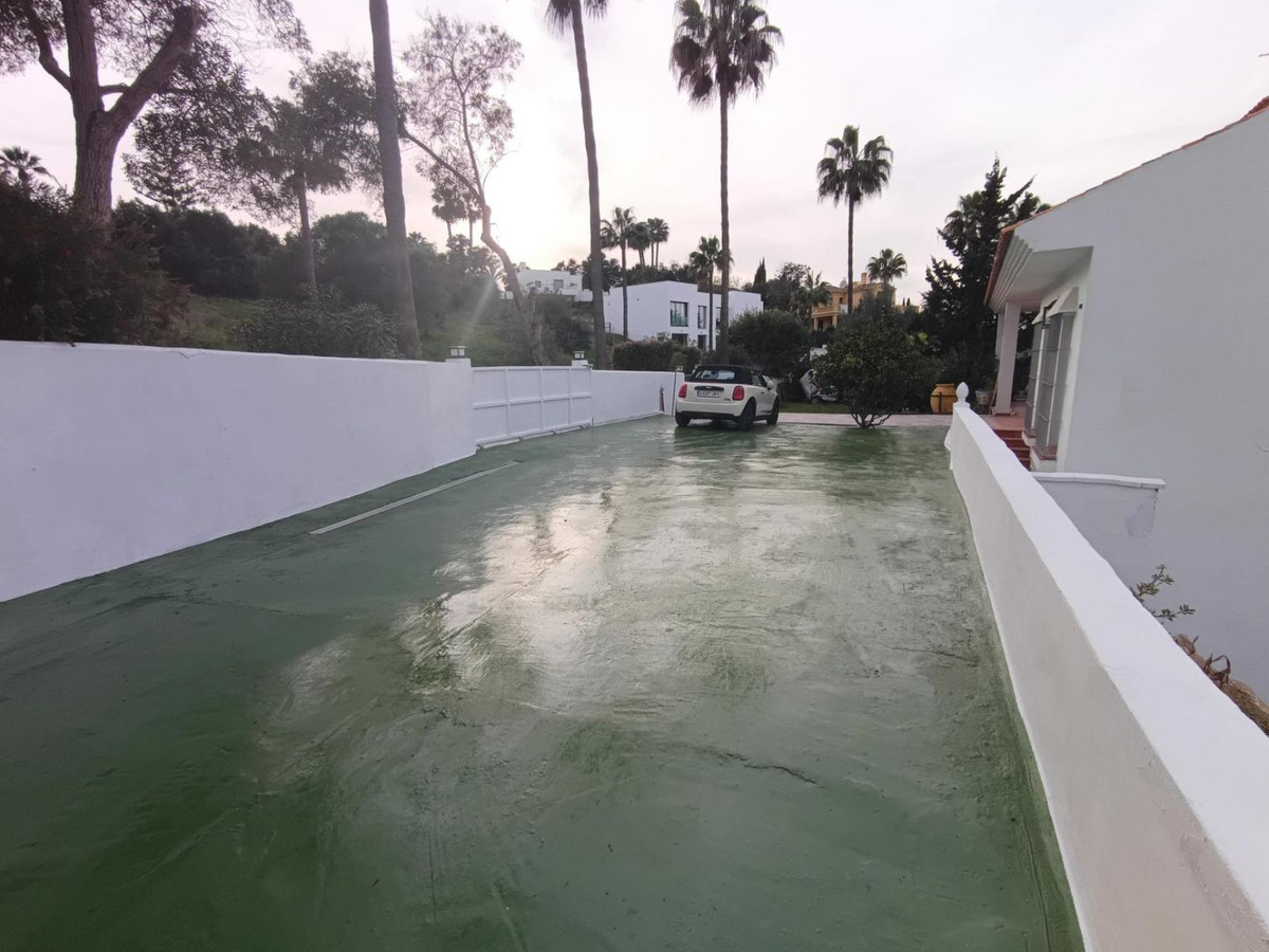 Chacune des cinq chambres avec salle de bains privative a été conçue pour le repos et l'intimité, offrant des vues sereines qui invitent à la détente. Le clou du spectacle : une vue imprenable sur le golf, un rappel constant du style de vie privilégié de Sotogrande. À l'extérieur, une piscine chauffée trône au cœur d'un jardin de 1 000 m², un cadre idéal pour savourer des moments inoubliables en toute saison.