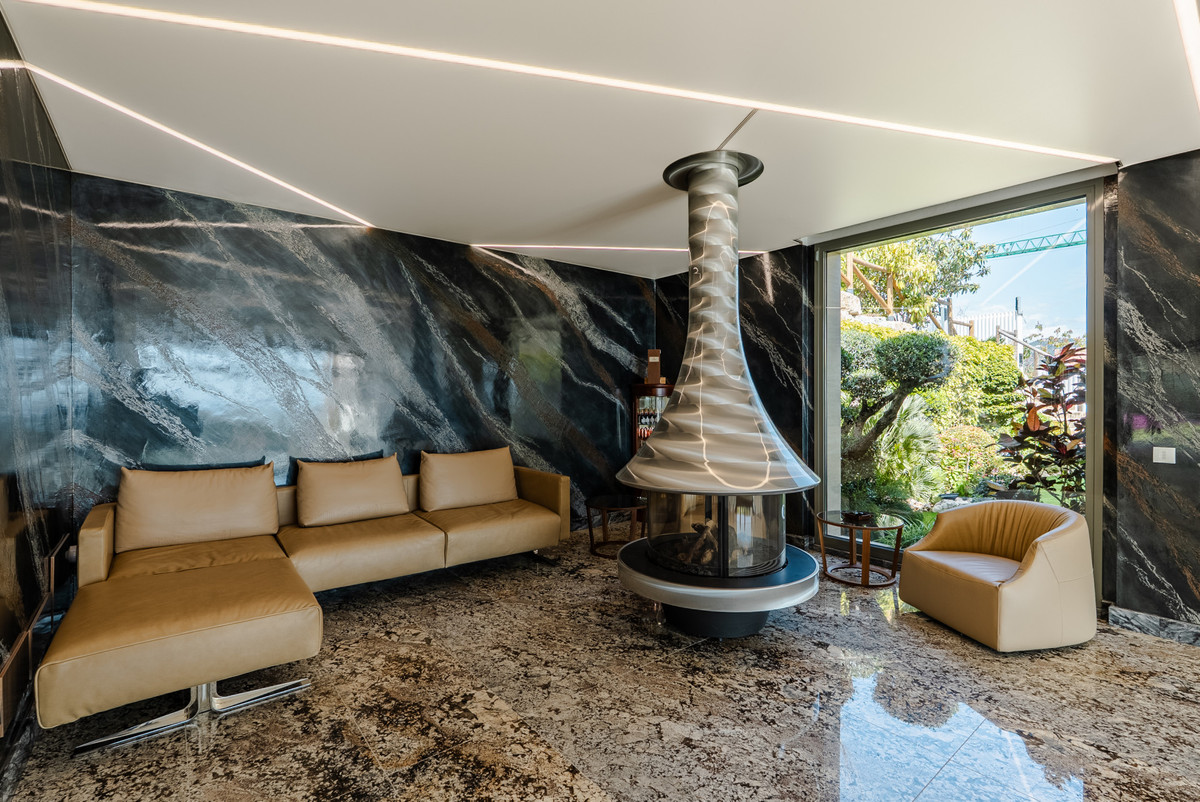 Cette villa se distingue par l'utilisation exceptionnelle de matériaux naturels haut de gamme. Les surfaces en marbre et en onyx grand format confèrent à l'ensemble de la propriété une esthétique luxueuse et unique.