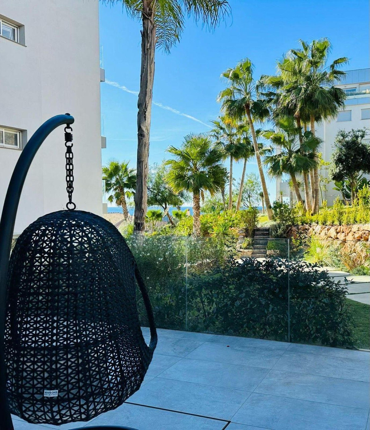 Appartement moderne de plain-pied avec vue sur la mer, situé dans la résidence Mediterráneo, un complexe très prisé de Mijas Costa.