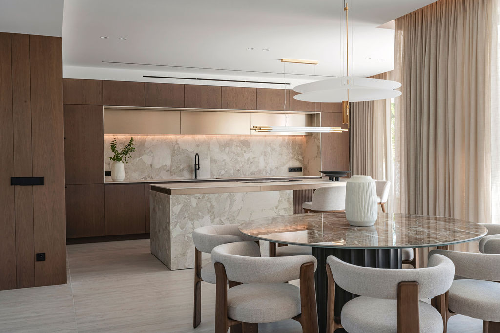 Construite avec des matériaux de haute qualité et des techniques de construction modernes, la propriété présente d'élégantes finitions en bois, des murs en briques pour plus de durabilité, des portes coulissantes à galandage en plâtre et des portes et cloisons contemporaines en métal et en verre, alliant esthétique et fonctionnalité.