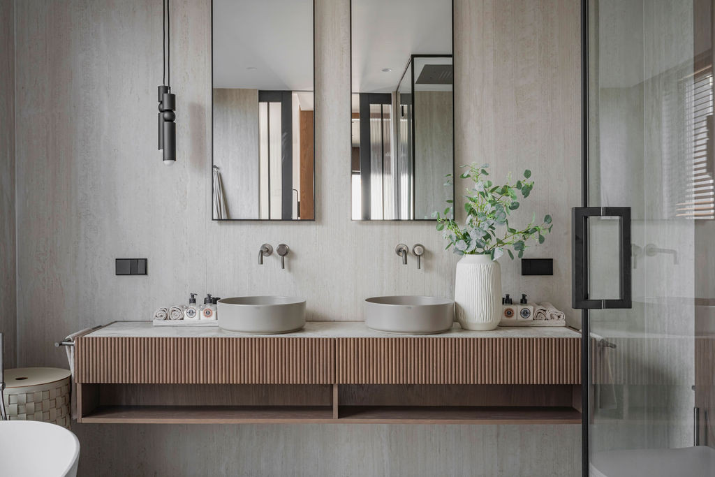 L'étage supérieur est dédié aux espaces de vie privés, comprenant quatre chambres avec salle de bains privative. La suite parentale se distingue par sa terrasse privée et sa salle de bains luxueuse, offrant un refuge confortable et intime. Plusieurs chambres bénéficient d'un accès à des terrasses qui favorisent une transition harmonieuse entre l'intérieur et l'extérieur et offrent de belles vues dégagées.