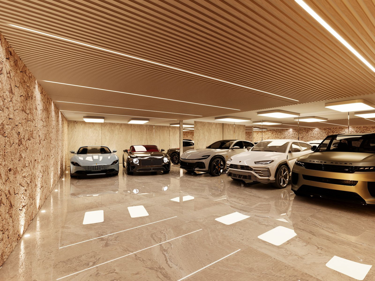 Garage spacieux pouvant accueillir jusqu'à 5 voitures, conçu pour un accès pratique et sécurisé.