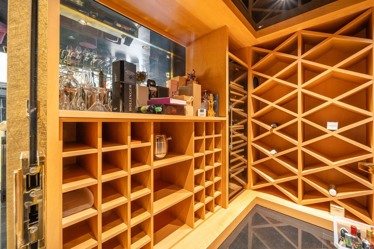 La maison principale, d'une superficie construite de plus de 1 200 m², se déploie sur trois niveaux desservis par un ascenseur. Chaque pièce a été conçue pour offrir confort, luminosité et espaces ouverts, en harmonie avec l'extérieur. Au rez-de-chaussée, un vestibule mène à un salon aux hauts plafonds et aux baies vitrées panoramiques. Attenants se trouvent un bureau, une chambre d'amis, une salle à manger séparée, une salle familiale et une cuisine entièrement équipée. Ces espaces donnent directement sur le jardin et la piscine, permettant de profiter pleinement de la vie dedans-dehors en toute saison. On notera également une terrasse vitrée et une suite d'invités indépendante. L'étage supérieur abrite la suite parentale, avec terrasse privative et vue imprenable sur la Méditerranée, ainsi que trois autres chambres avec salle de bains privative. Au niveau inférieur se trouvent un appartement indépendant et un espace de loisirs complet comprenant une salle de sport, un sauna, une cave à vin, une salle de cinéma et des espaces de rangement.