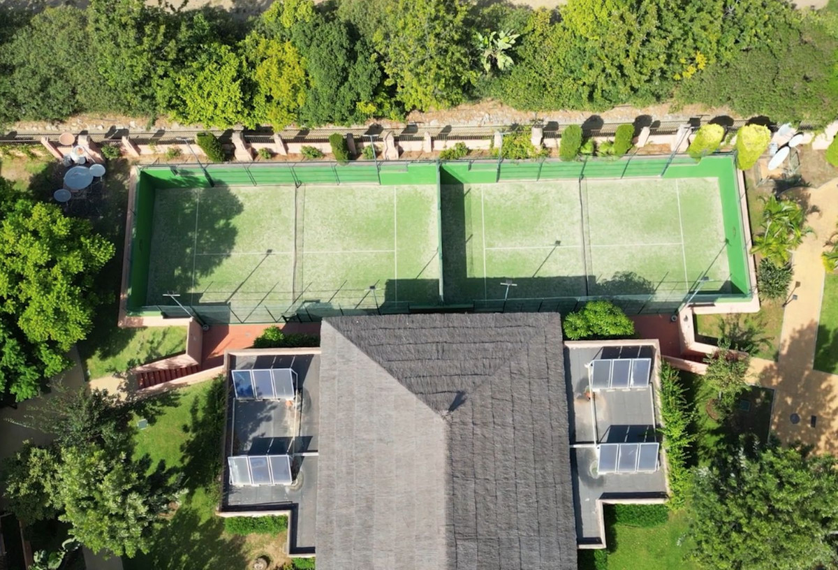 La résidence offre d'excellentes installations, notamment cinq piscines, une salle de sport intérieure, un sauna, des courts de padel et un service de sécurité avec portail 24h/24, ainsi qu'un parking souterrain et un local de rangement privé.