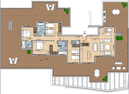 Appartement au dernier étage, non meublé, Cuisine américaine, Parking: Grand garage, piscine communautaire, Jardin: Communauté, Orientation: Sud