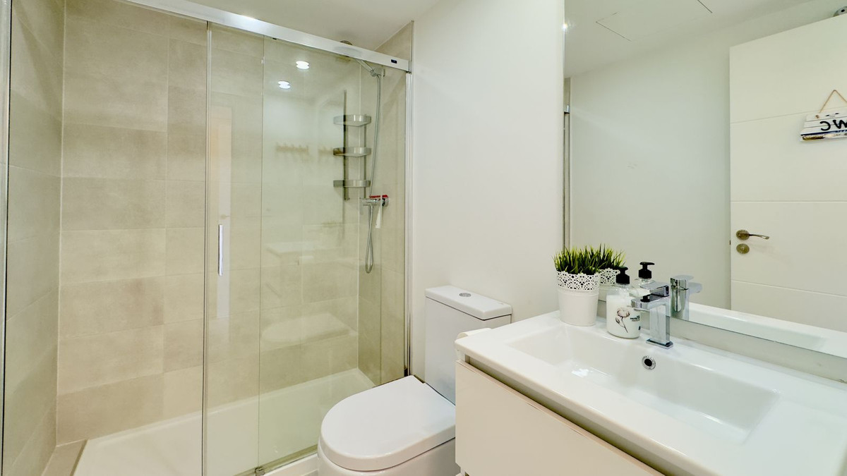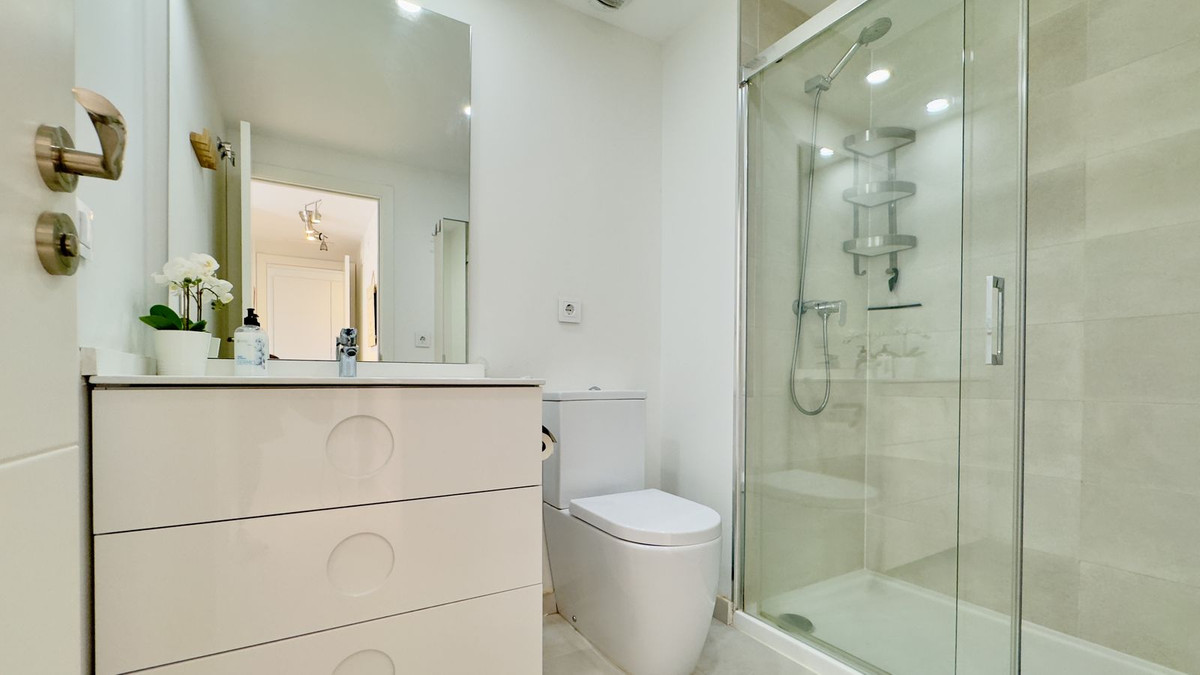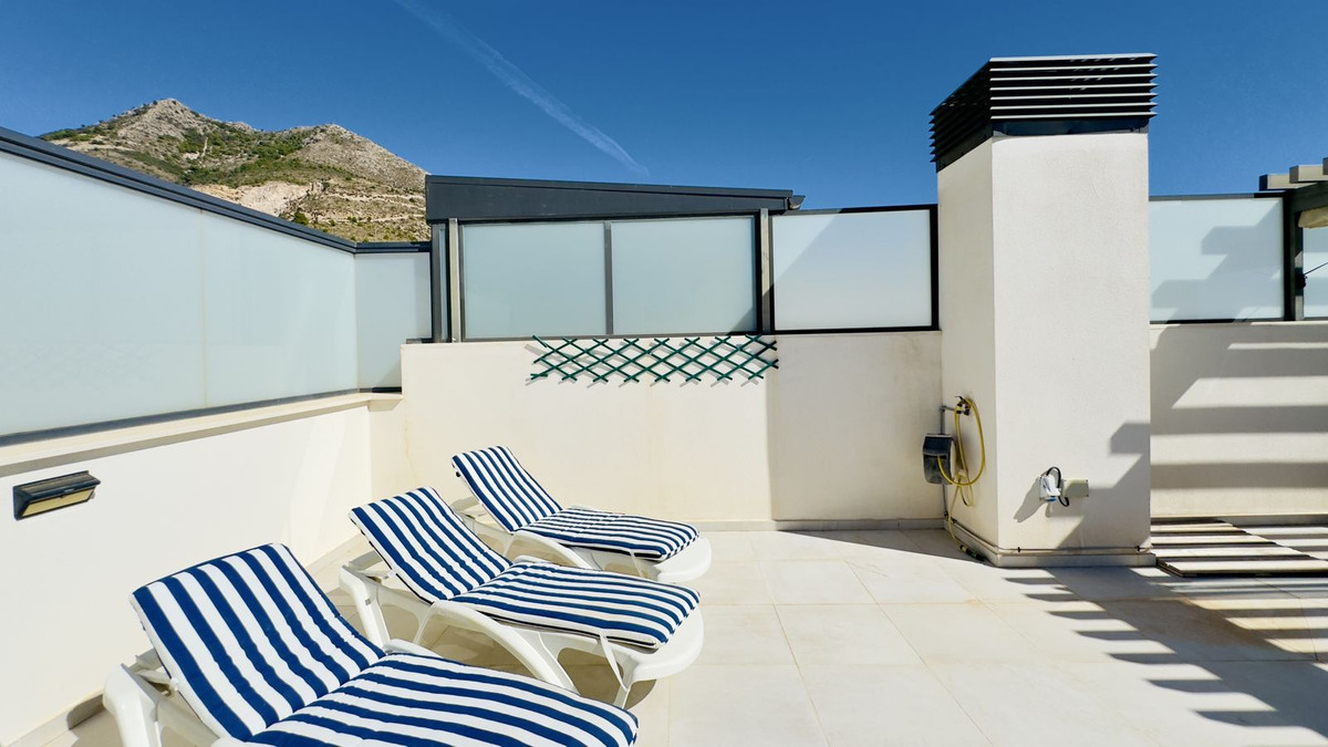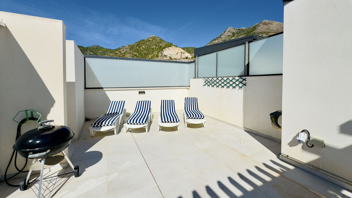 This beautiful 2-bedroom, 2-bathroom penthouse in Benalmadena offers high-quality finishes throughout, creating a luxurious atmosphere. The smart, modern floor plan optimizes space for comfortable living. The outdoor areas are a standout feature, with a south facing lower terrace that enjoys a lot of sun, and a large rooftop terrace with amazing sea views and sunshine all day. A private sauna on the rooftop adds a touch of indulgence.