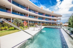 Built in 2024, this south-facing, modern apartment boasts a sustainable design with large terraces that offer open views, perfect for enjoying the beautiful surroundings. The communal swimming pool and landscaped gardens add to the appeal, providing a serene environment for residents. With 137 m² constructed and 94 m² usable space, the apartment includes 2 spacious bedrooms, 2 bathrooms, a terrace, and a balcony.