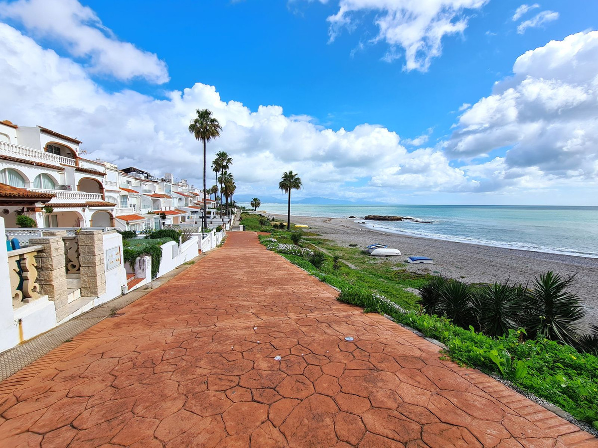 The house is located on the second line of the beach, just steps from the beautiful coastal path that connects the entire Costa del Sol. Sabinillas and the prestigious Sotogrande are just a 5-minute drive away, where you'll find supermarkets, restaurants, and shops. The property is south-facing and has a beautiful private garden with a porch that serves as the entrance to the house, which is spread over two floors plus the solarium. On the ground floor, there is a living-dining room with a fully equipped open-plan kitchen and a guest toilet. On the first floor, there are two bedrooms: a master bedroom and a single bedroom, as well as a shared bathroom equipped with a shower. On the top floor, there is a solarium with partial sea views and a room that is currently used as a laundry room. The house enjoys beautiful gardens and a communal pool. A GREAT OPPORTUNITY TO EXPERIENCE THE LUXURY OF BEACHFRONT LIVING! WE RECOMMEND A VIEWING!