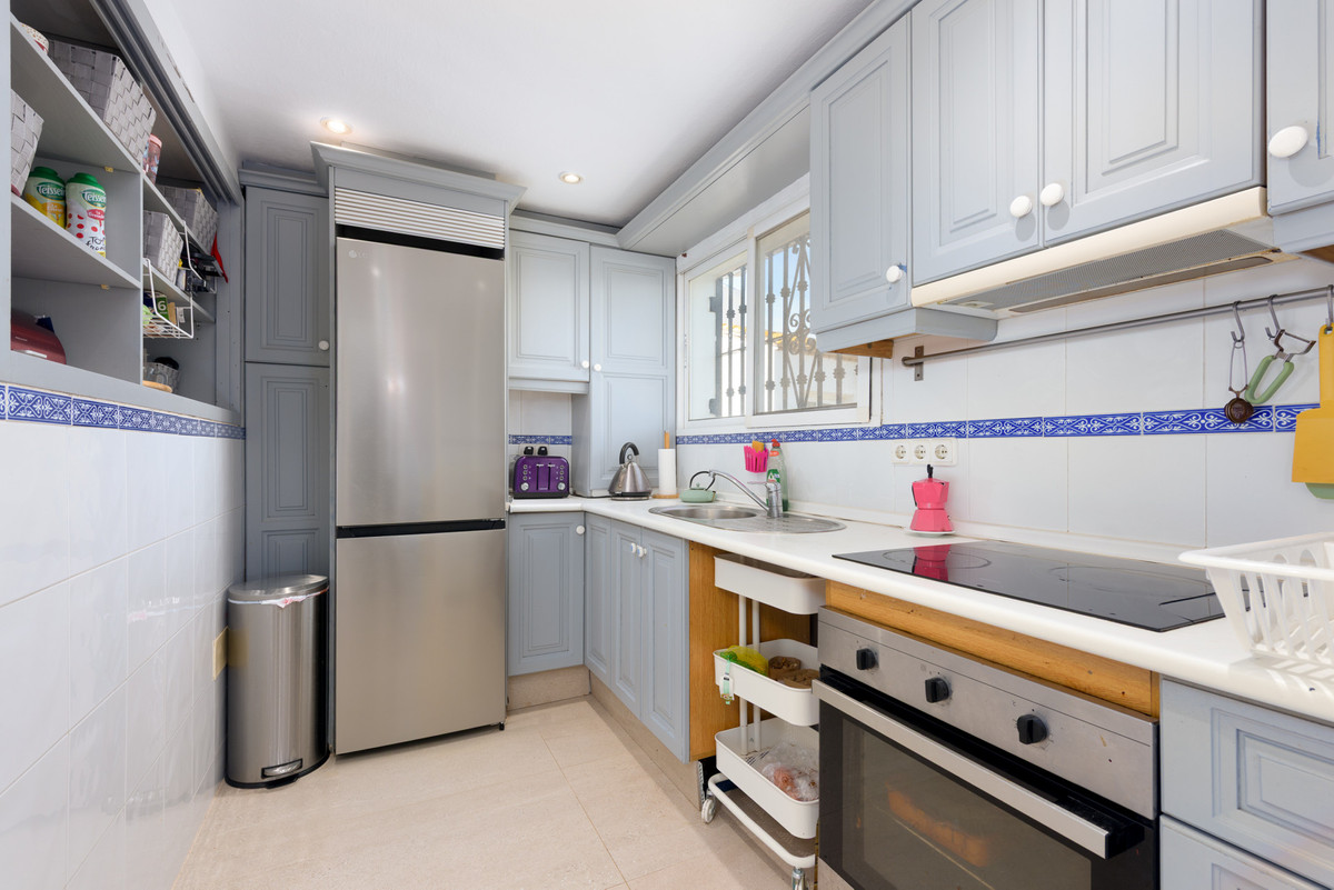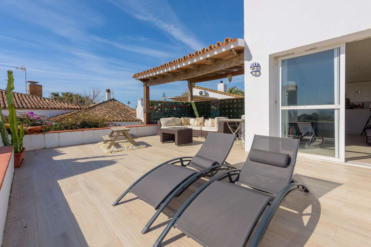 Well positioned, three bedroom townhouse, frontline to the beach on the west side of Estepona in Bahía Dorada.