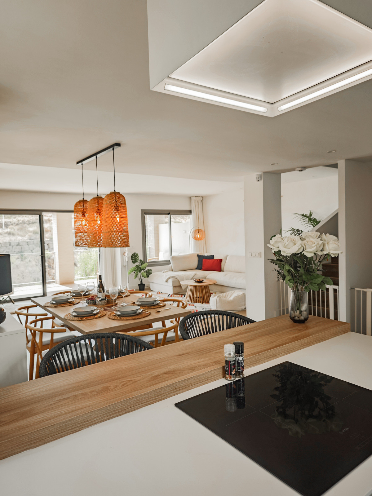 The villa is thoughtfully designed for modern living. The main level features a bright, open-plan living area that flows seamlessly into a sleek, contemporary kitchen. Step outside to your private terrace and garden, perfect for al fresco dining, relaxation, or entertaining under the Mediterranean sun.