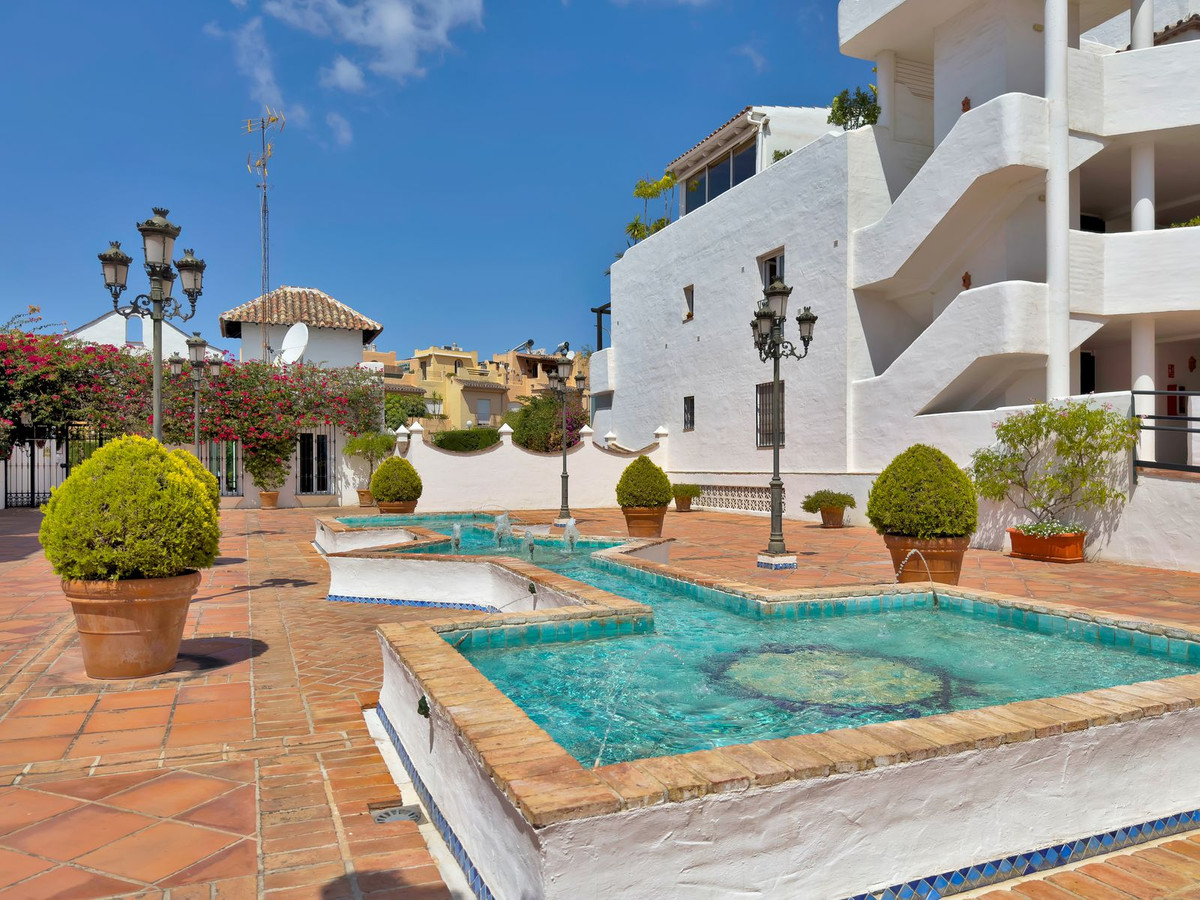 Within pretty landscaped gardens which include a lovely Andalusian-style water feature and large swimming pool.