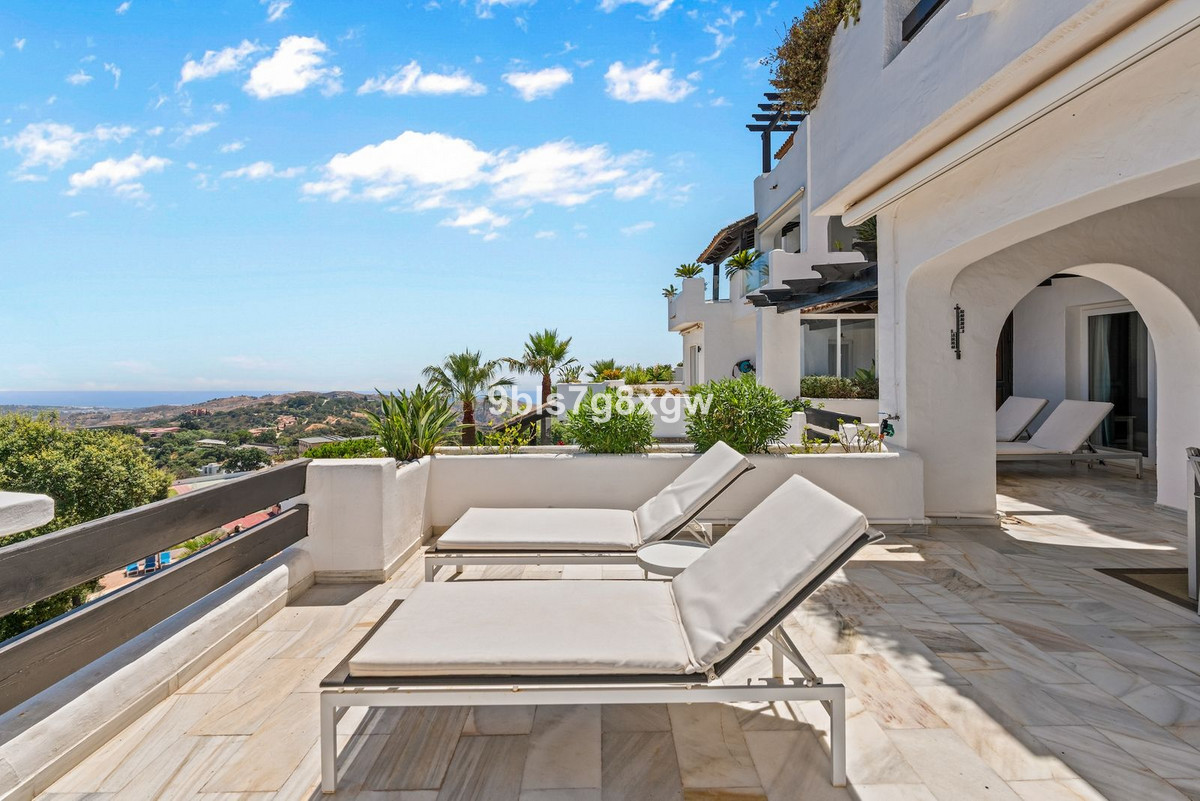 Nestled in a charming Andalusian-style gated and secured community in the picturesque area of La Mairena, this unique 2-bedroom, 2-bathroom corner apartment blends traditional character with modern comfort and offers truly breathtaking views of the Mediterranean Sea, rolling countryside, and majestic mountains. The residence boasts beautifully landscaped surroundings and a large communal swimming pool, perfect for relaxation.