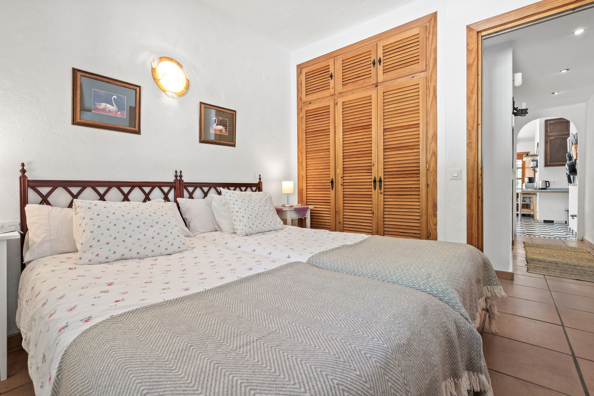 Cette villa de plain-pied, à l'agencement pratique et fluide, conserve le charme authentique d'une maison de campagne. Des détails tels que des plafonds voûtés et à poutres apparentes, des pierres rustiques et du fer forgé décoratif apportent chaleur et personnalité. Une suite d'invités séparée, accessible par un escalier extérieur depuis le patio, assure l'intimité des visiteurs. L'élégante allée, les oliviers, les points d'eau et le verger créent l'atmosphère d'une finca miniature.