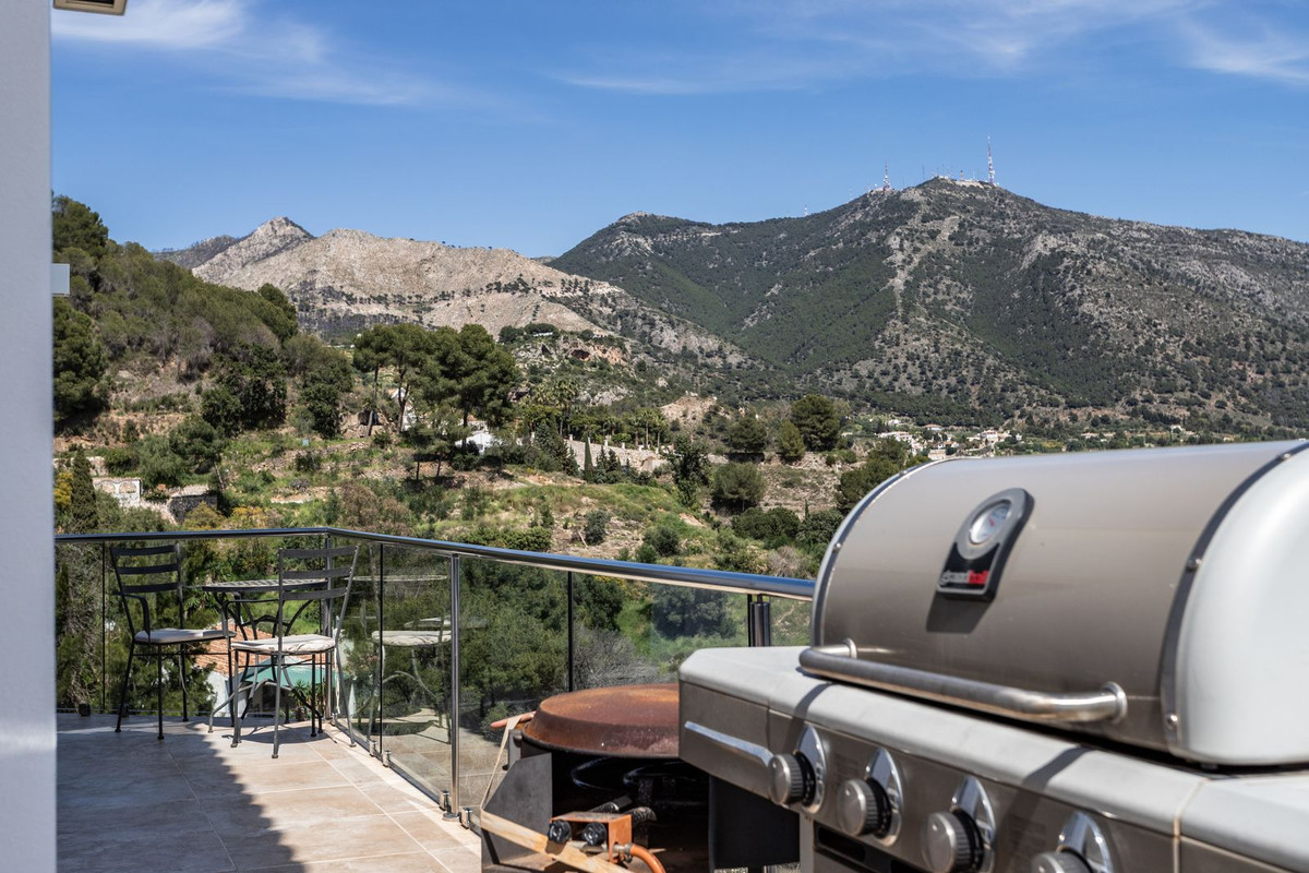 Depuis l'étage, vous profiterez d'une vue imprenable sur Mijas : un vaste panorama sur la mer Méditerranée et les montagnes environnantes. Vous pourrez profiter du soleil du matin au soir depuis l'une des nombreuses terrasses ou espaces extérieurs au bord de la piscine privée.