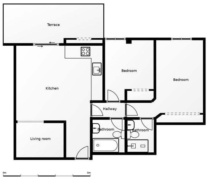 2 Chambres, 2 Salles de bains, Surface construite 90 m², Terrasse 16 m².