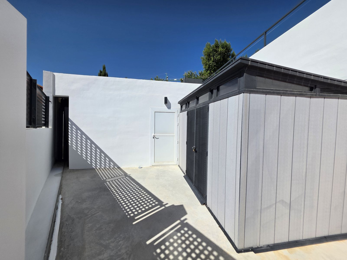 À l'extérieur, la villa dispose d'une piscine privée de 8 x 4 m, entourée d'un jardin offrant divers espaces de détente ou de détente en famille. La véranda couverte, les spacieuses terrasses d'environ 40 m² et la conception du terrain permettent de profiter pleinement du climat méditerranéen. Un garage privé pour deux voitures et un débarras sont également à disposition.