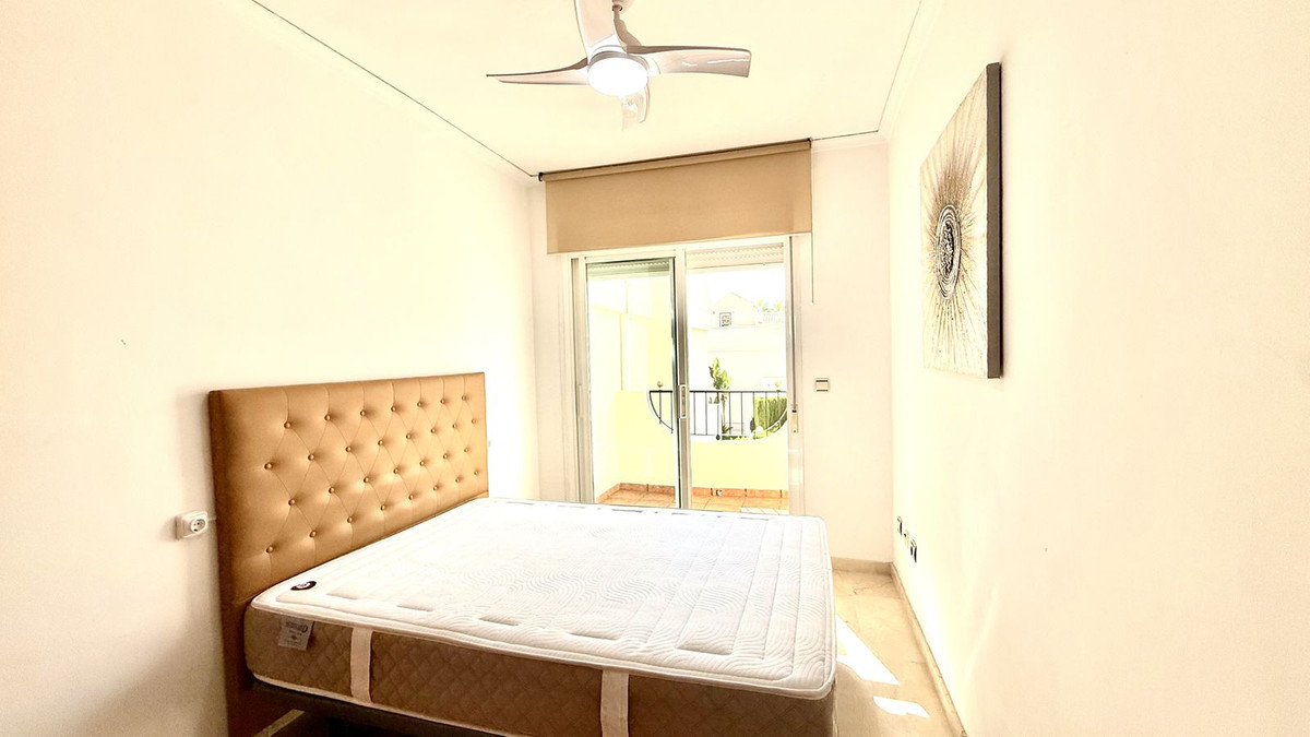 La maison dispose de trois chambres spacieuses, toutes dotées de placards intégrés et baignées de lumière naturelle. La chambre principale dispose d'une salle de bains attenante et d'un accès à une terrasse privée donnant sur les parties communes. Les deux autres chambres bénéficient également d'un accès à des terrasses privées.