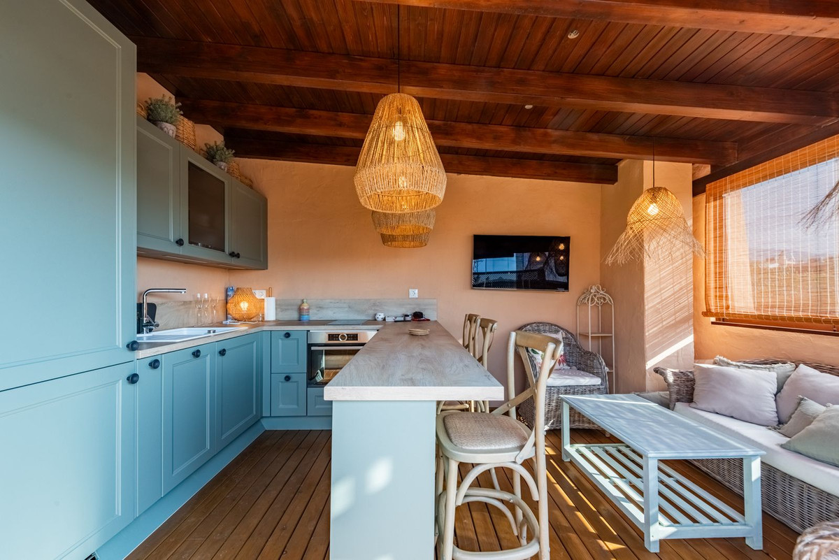 Le dernier étage dispose d'une terrasse fermée avec cuisine d'été entièrement équipée et coin salon. Cet espace peut être ouvert pendant les mois les plus chauds et comprend une piscine, idéale pour recevoir ou se détendre en toute intimité.