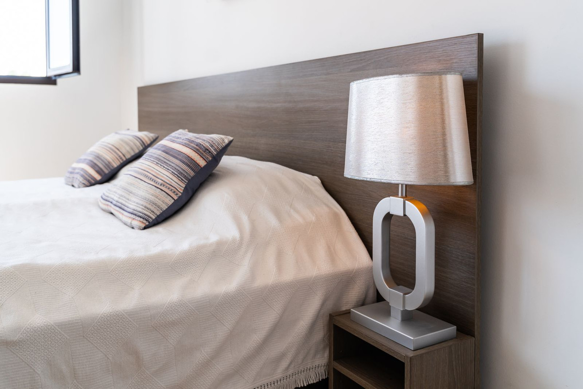 Plus loin, nous avons deux chambres confortables (dont une avec accès à la terrasse) et une salle de bain pour invités.